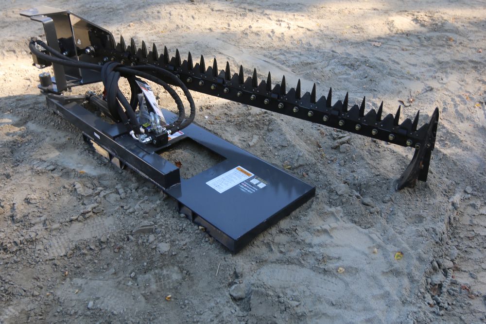 Wolverine Skid steer sickle bar mower attachment, model SBM-12-72W, 1" cutting capacity, 72" cutting length, blade swing of +90 degrees -30 degrees.
