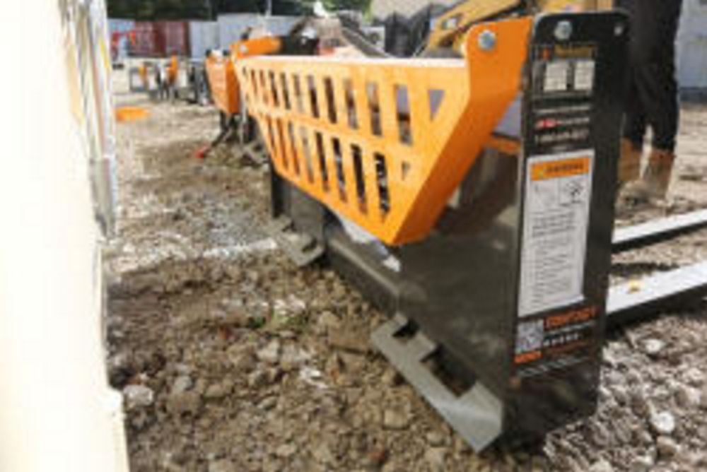 Wolverine skid steer pallet fork attachment hydraulic adjustment, model PFA-11-3300G, 48" fork adjustment.