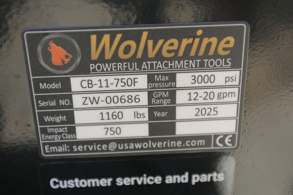 Wolverine skid steer concrete breaker attachment, model CB-11-750F, 750ft.lb. impact energy class, 2.67" working steel diameter.