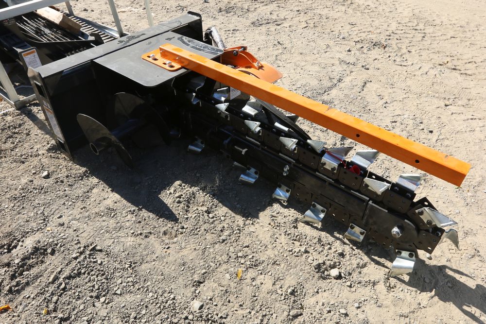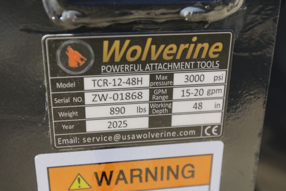 Wolverine Skid Steer Trencher attachment, model TCR-12-48H, trenching width 8", depth 48", clearing auger dia 15"