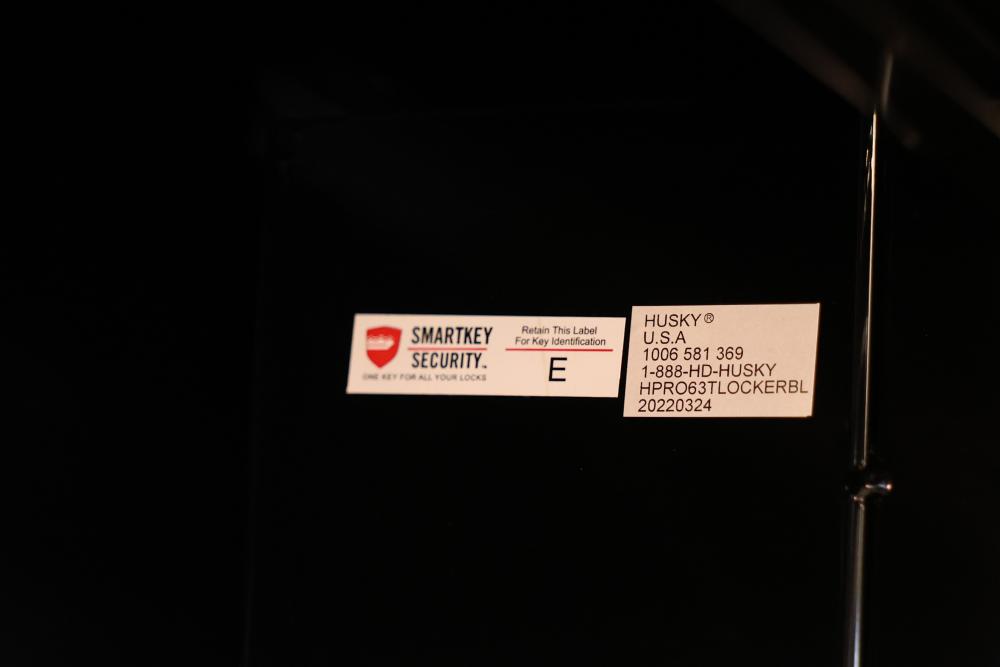 Husky HPR063TLOCKERBL black tool locker featuring a sturdy construction with a secure locking mechanism. Model #HPR063TLOCKERBL. Comes with one handle.