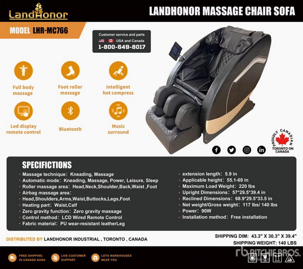 New 2025 Landhonor massage chair sofa model: LHR-MC766 with massage area from neck to foot, heating compress, LED display remote control, and bluetooth.