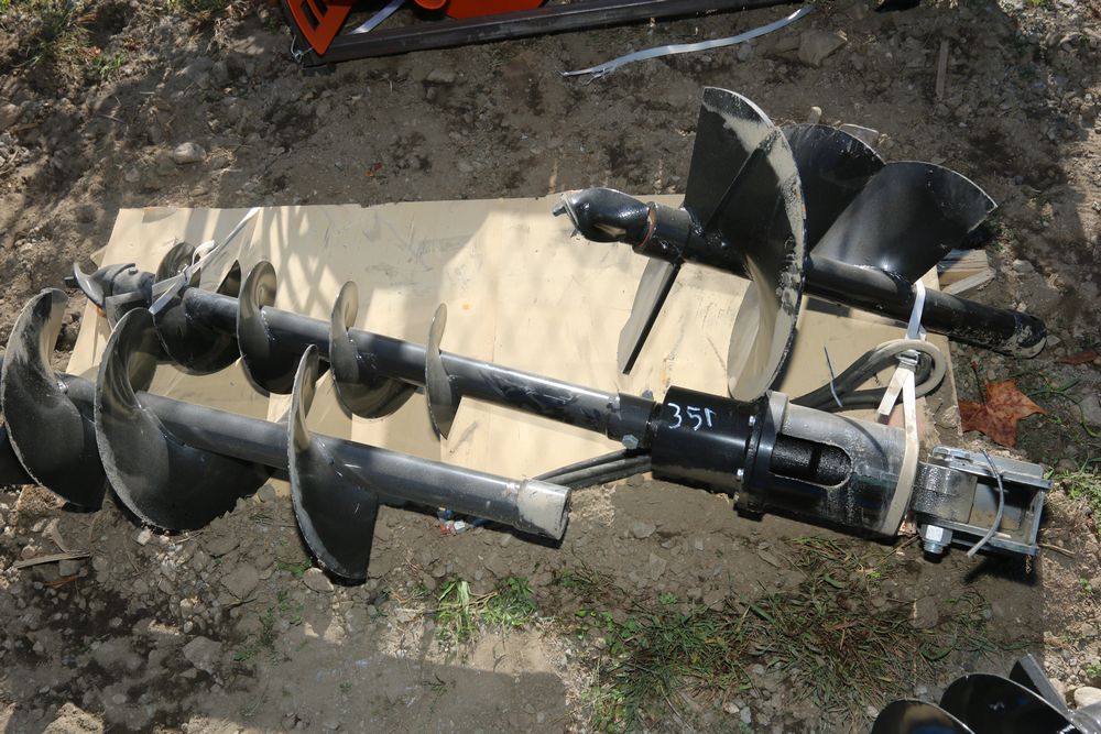 MIVA mini excavator auger, qnty of 3, 8", 12", 16". Fits 1-2 ton excavator, pin is 2" diameter.