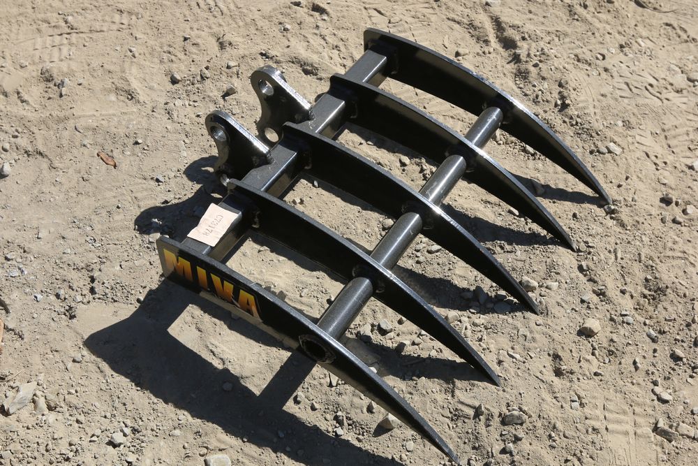MIVA mini excavator rake. Fits 1-2 ton excavator, pin is 1" diameter.
