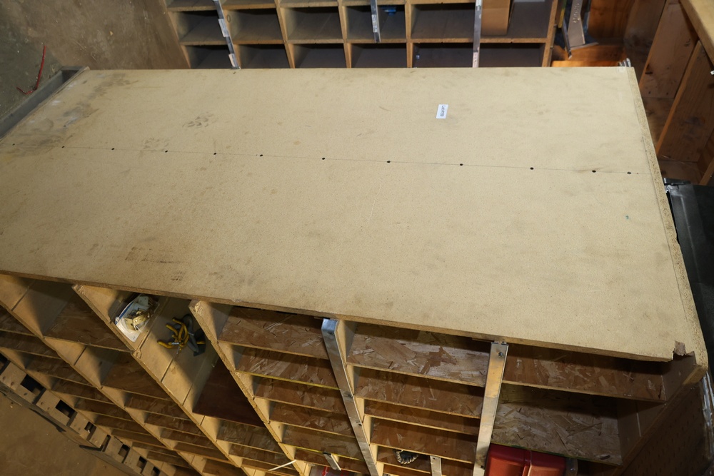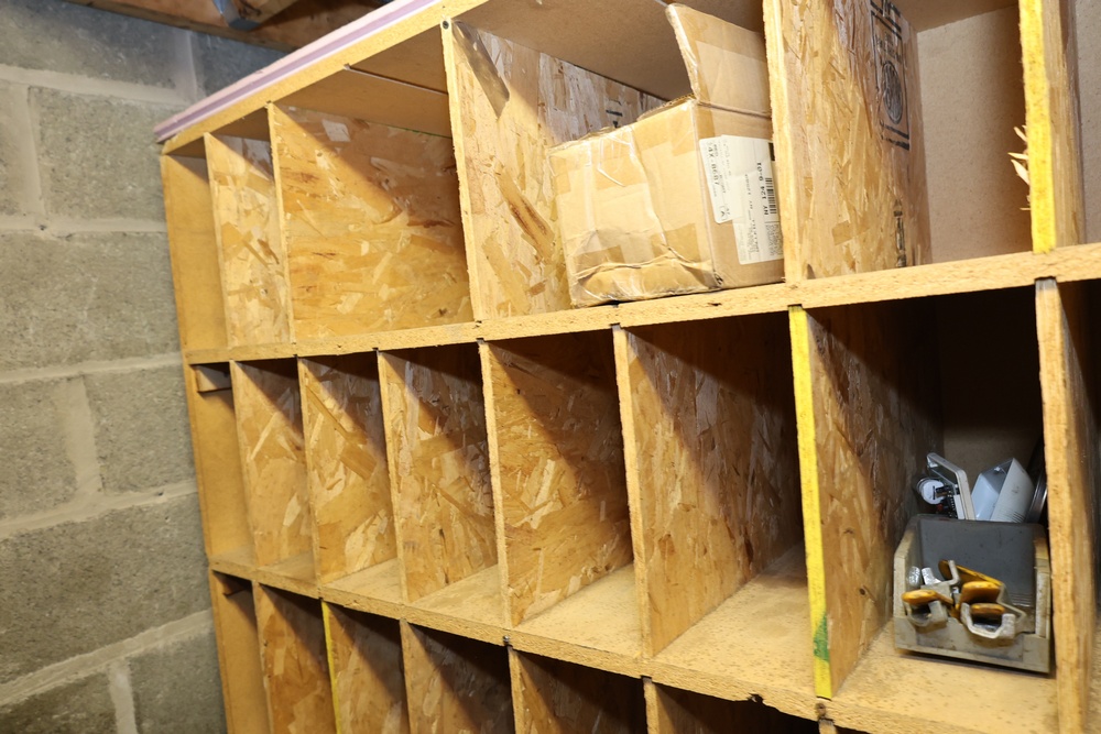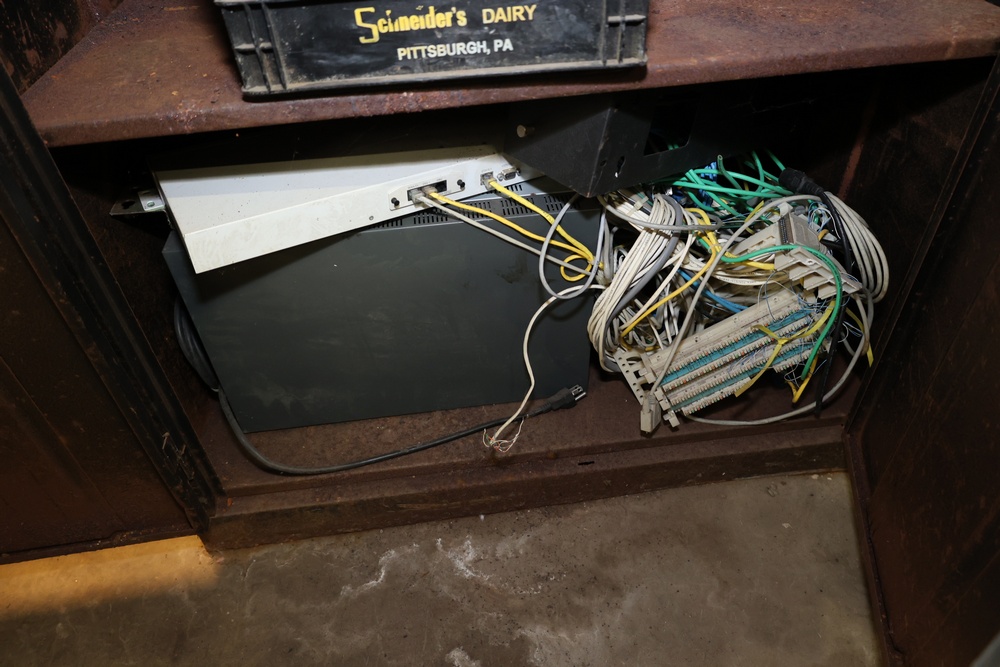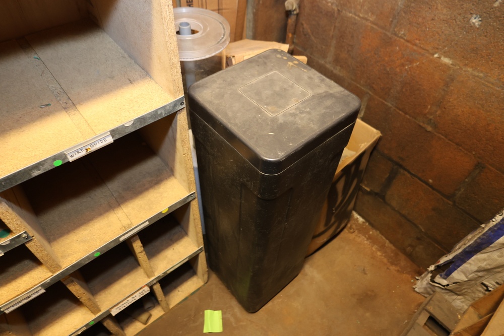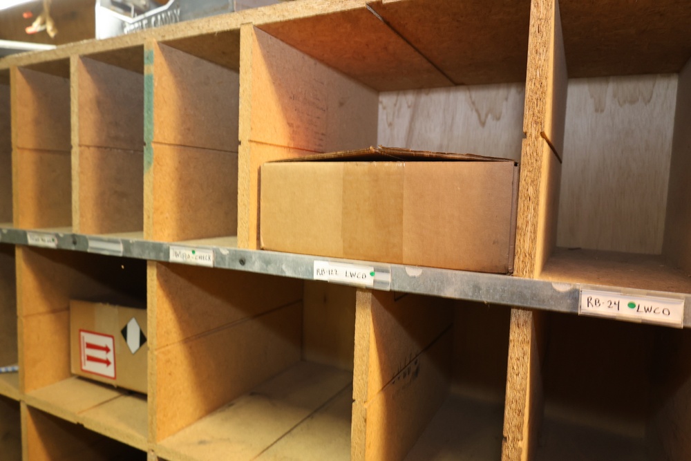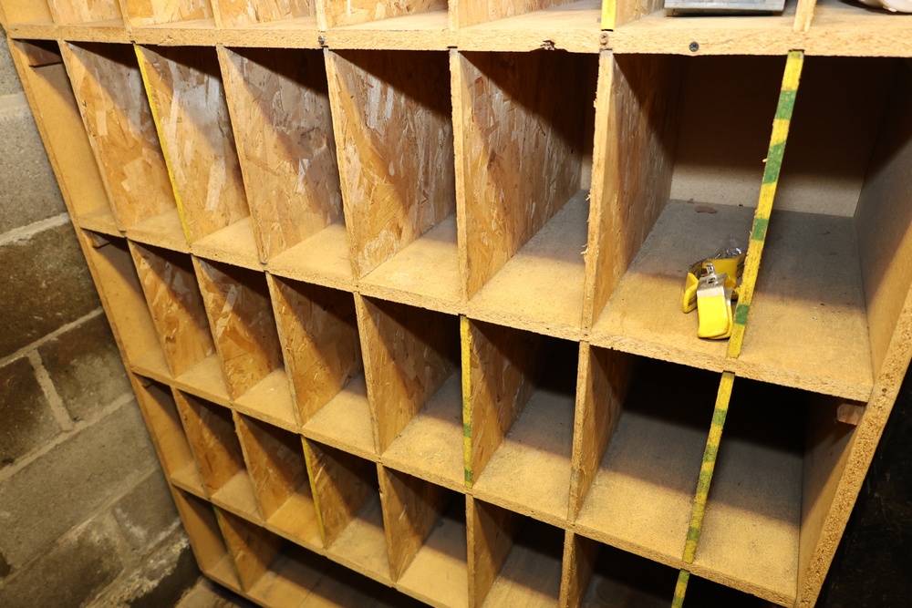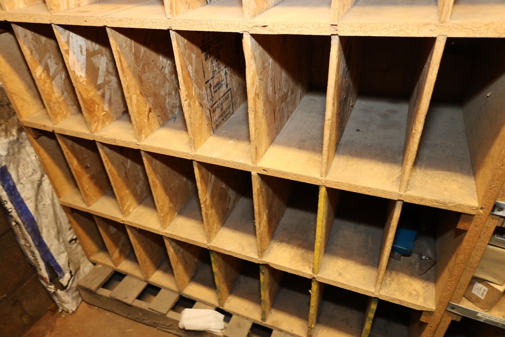 Contents of storage bins including parts, hardware, metal locker, fire resistant filing cabinets, etc. Buyer must take all.