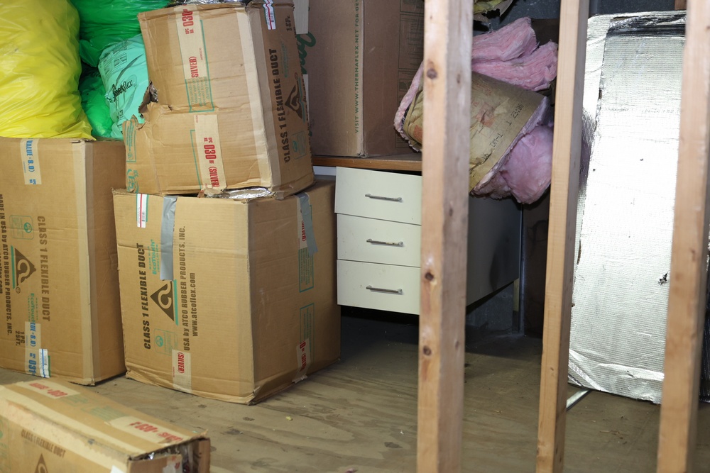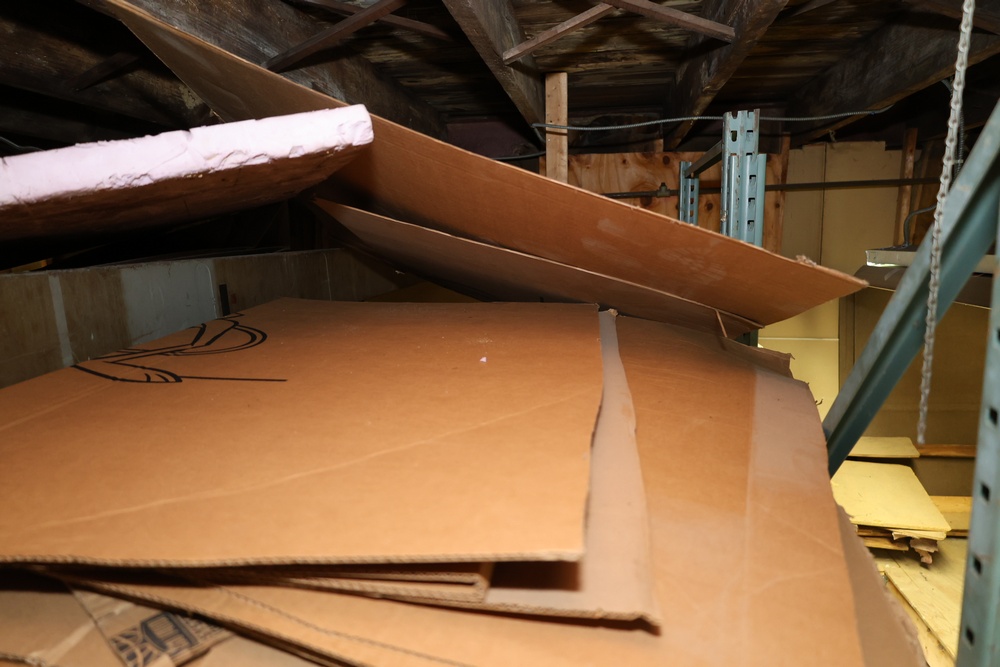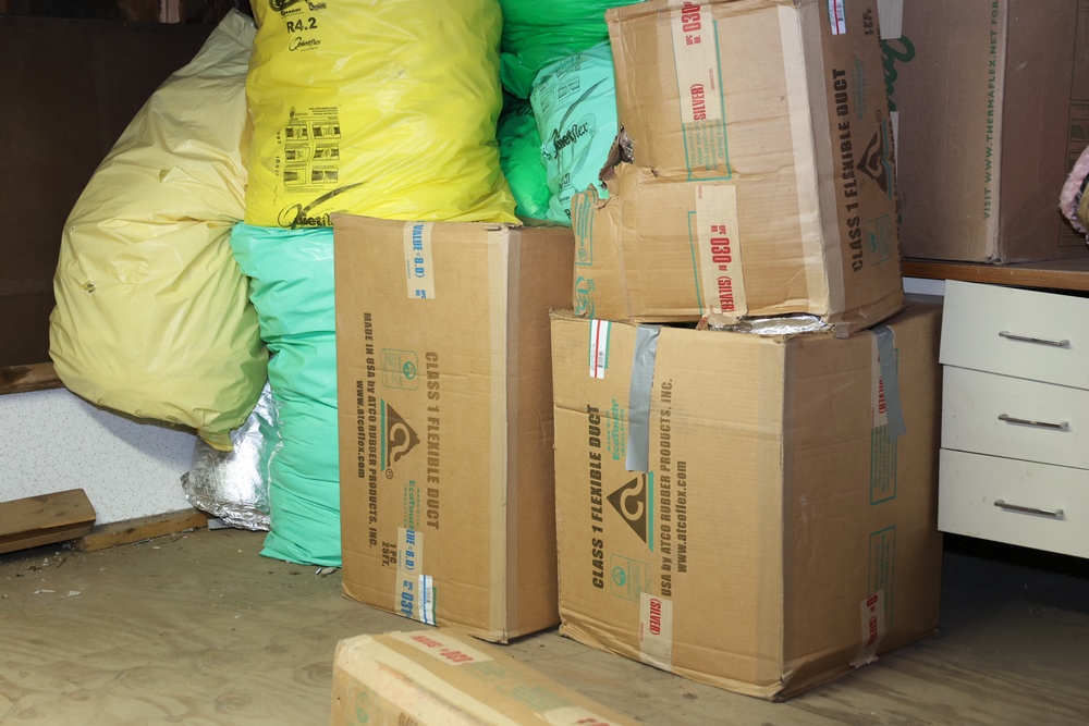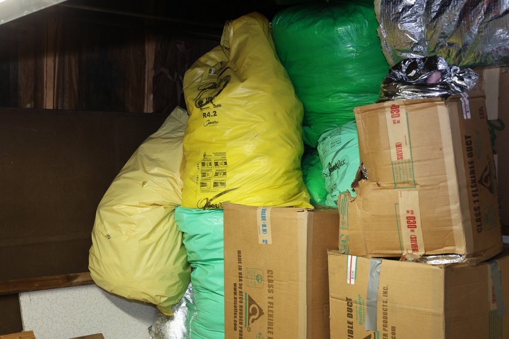 Contents of loft area including cardboard boxes, insulation, etc. Buyer must take all.