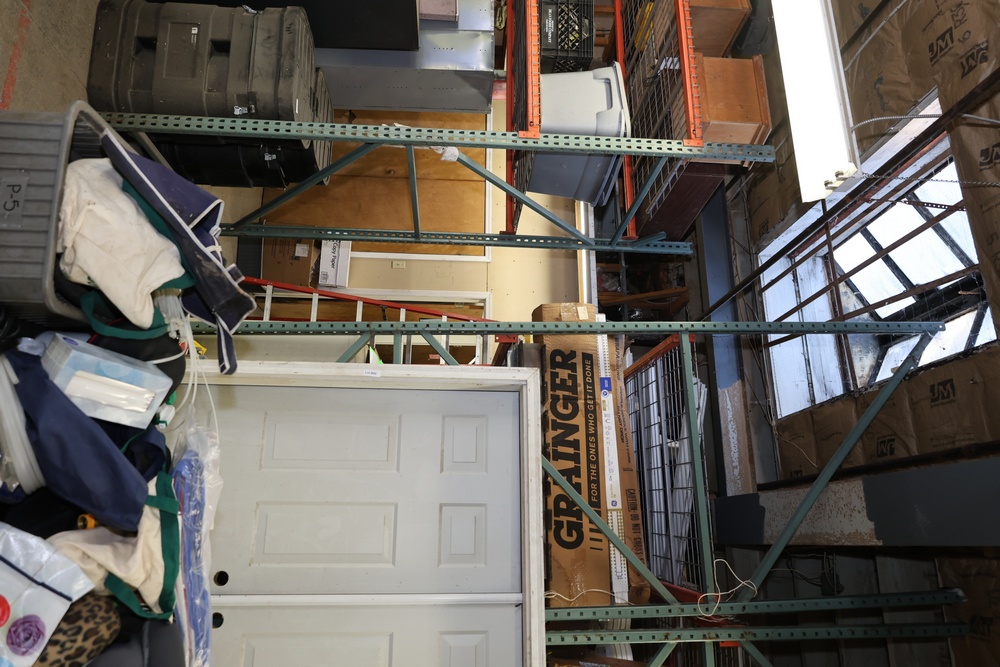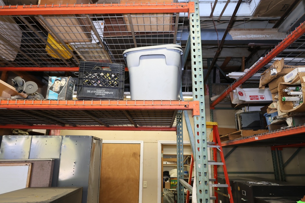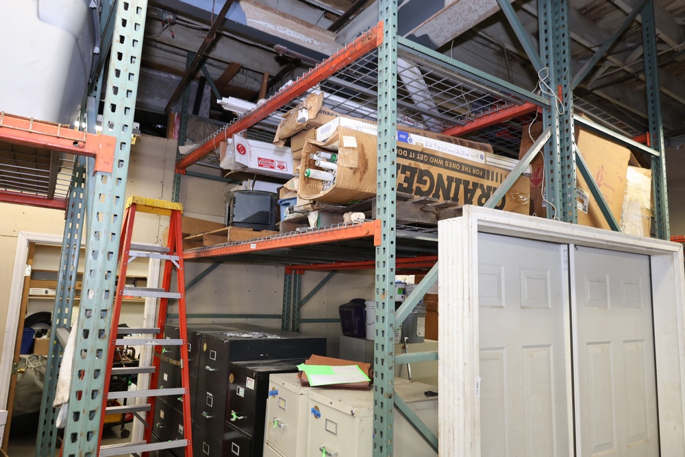 Pallets racks including eight uprights and seven shelves. This is not bolted to the floor. Excludes all contents. NOTE - This lot must be picked up on Saturday October 25th at 9AM no exceptions.