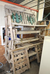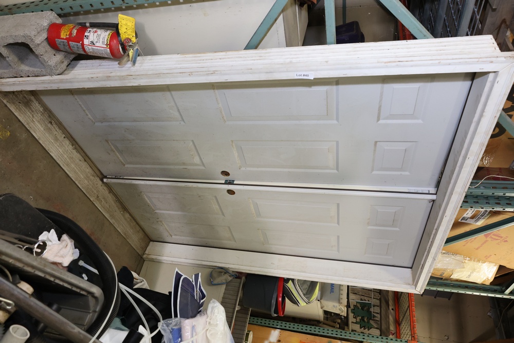 Contents of pallet racks including waste bin, electrical cables, antique doors, spreader, mop bucket, etc. Excludes pallet racks and other lots. Buyer must take all.