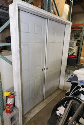 White entrance door With Frame and Trim. The dimensions are approximately 80 inches in height and 72 inches in width. Pickup only.