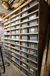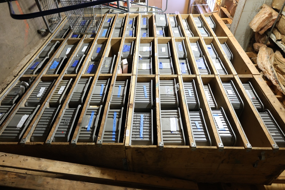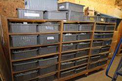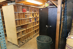 Contents of storage bins including parts, hardware, metal locker, fire resistant filing cabinets, etc. Buyer must take all.