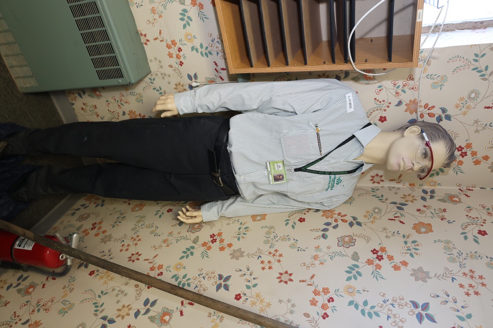 Two mannequins, one complete, one missing parts.