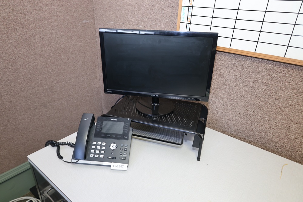 Yealink T46G VoIP Phones with power cords and network connectivity ports. Each phone has functional tactile keys, an LCD display, and an HD handset. Suitable for office or business use. Includes additional monitors and a keyboard as shown. Buyer must take all.