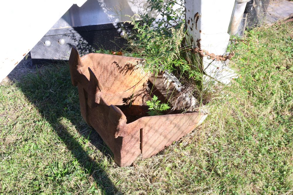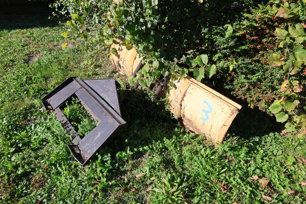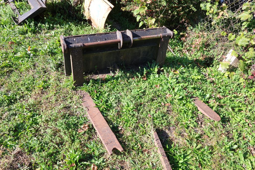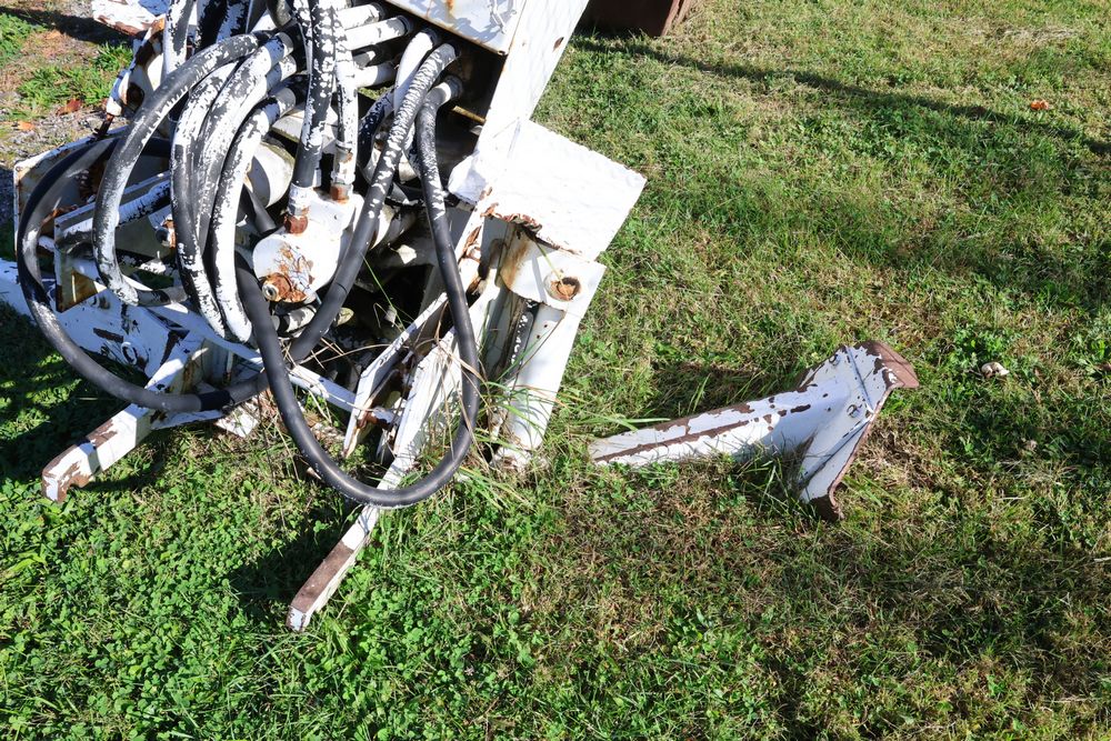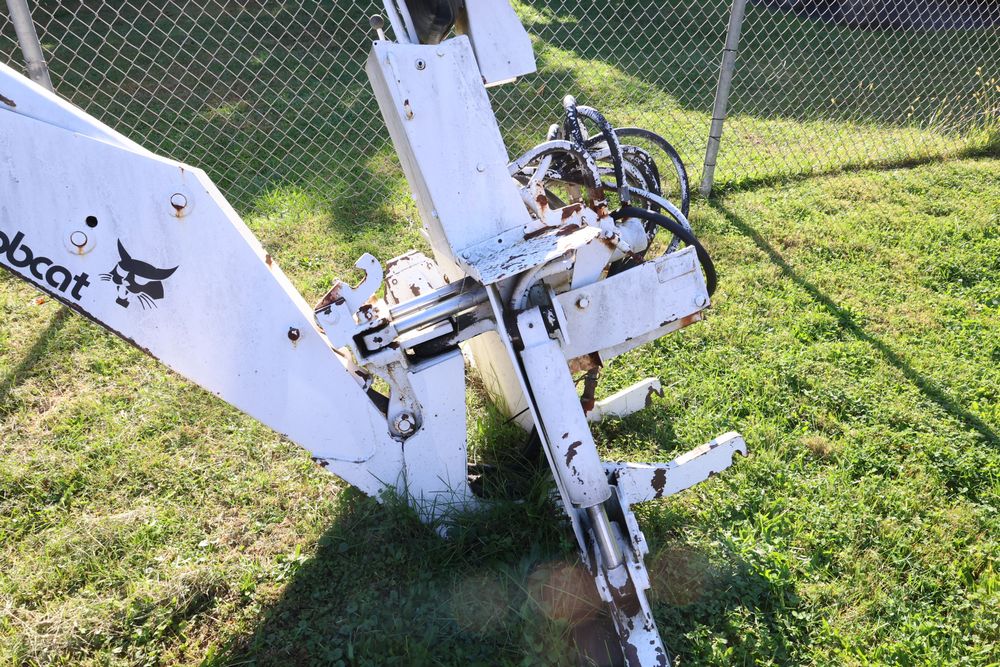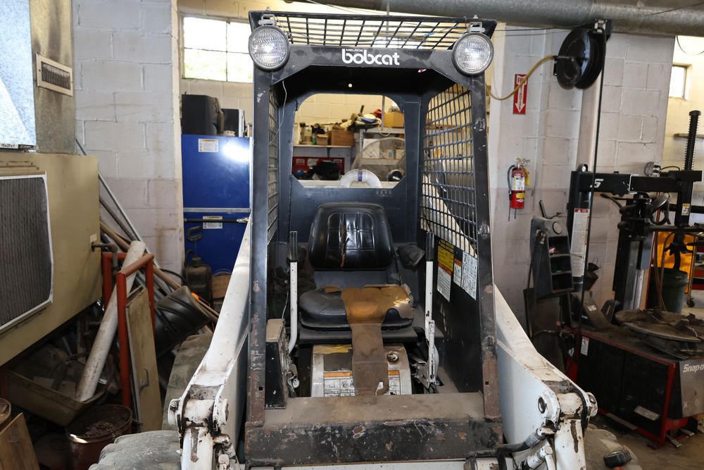Items include Clark Bobcat Model 825 Hydrostatic Skid Steer Loader, Portable metal-sided office trailer, Conex containers, Micro-Grade Laser System, building materials, tools, tires and more. Items are located in Beacon, NY.