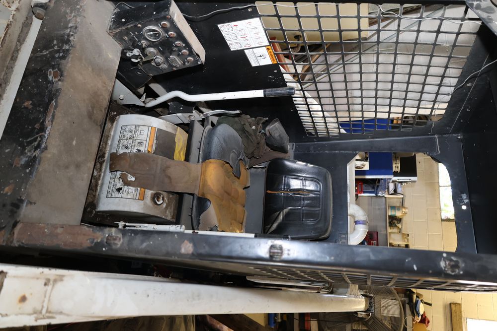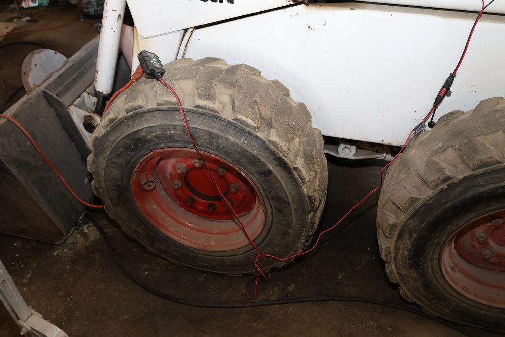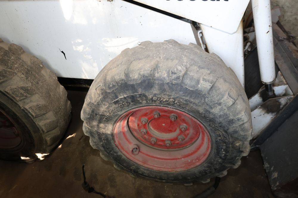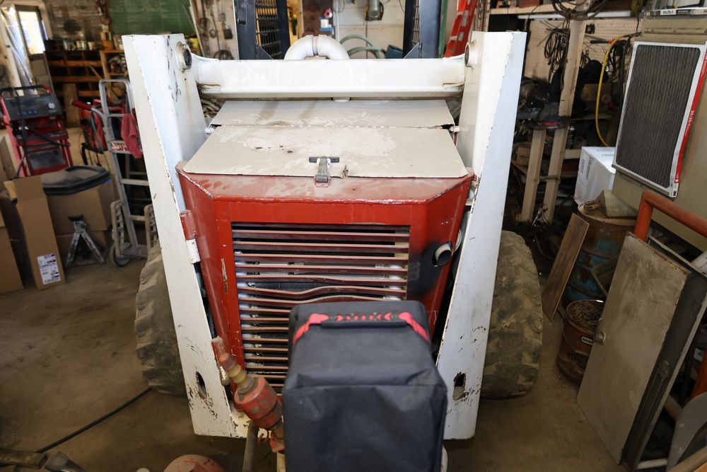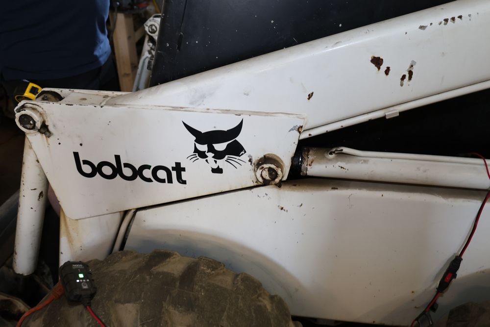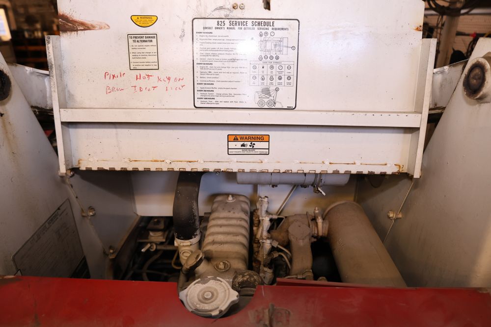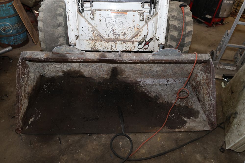 Clark Bobcat Model 825 Hydrostatic Skid Steer Loader. Serial Number: 4958-MA-15128. Unit features an open ROPS operator station, front bucket attachment, and hydraulic controls. Includes assorted attachments and implements shown, including a Bobcat-branded backhoe attachment, additional buckets, mounting frames, and miscellaneous steel components. Lot also contains assorted Clark, Fram, and NAPA boxed filters and small parts as pictured. Runs and operates. Seller reports: backhoe attachment was in working condition when removed, hasn't been used in years.