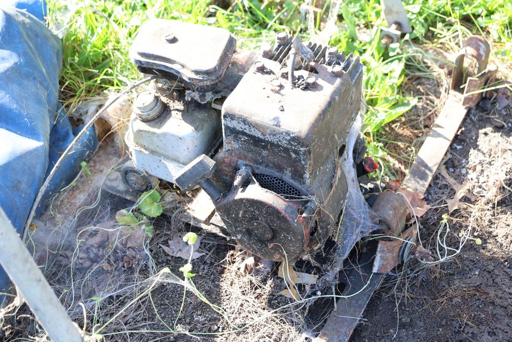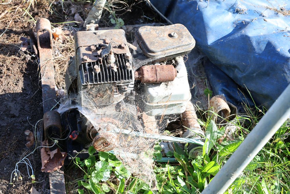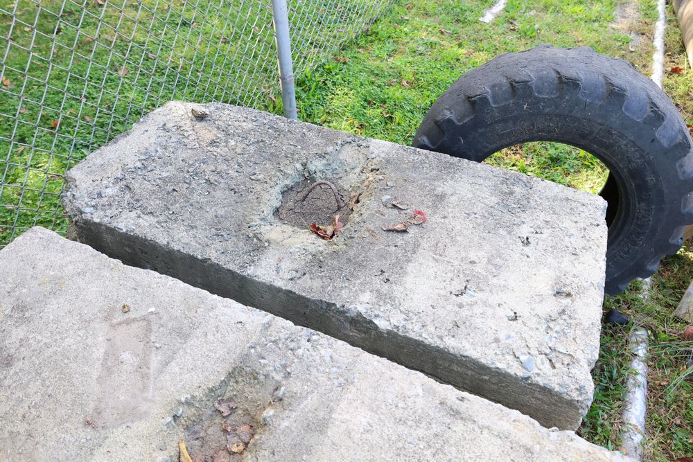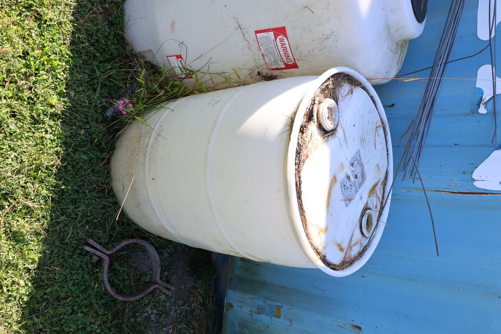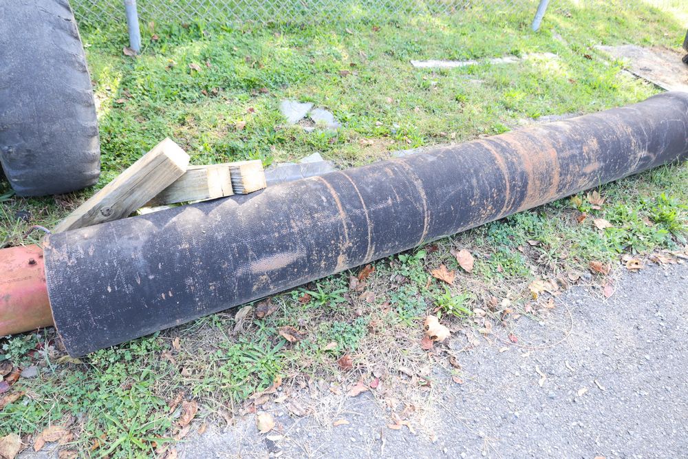 Concrete blocks, pipe, pump, and plow bracket. Pipe measuring 114"L x 14" ID large side x 12" ID small side. Blocks measuring 4'L x 22"W x 2'T. Items include various metal components, drums, and additional items identifiable in the photos. Buyer must take all. Pickup only. Buyer responsible for finding third party transport company to load and move, if necessary.