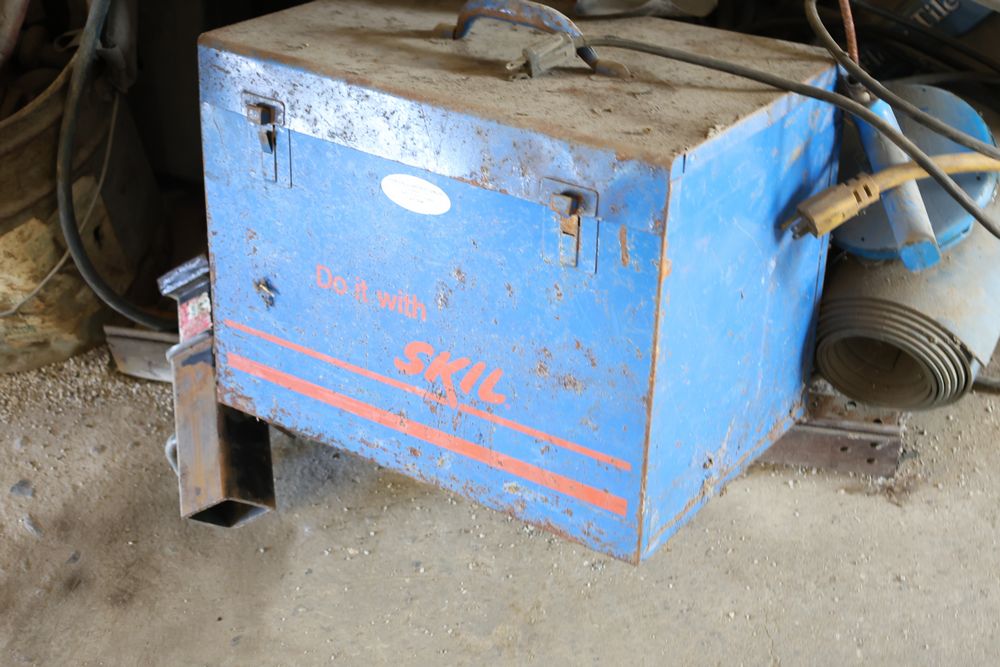 Items include Clark Bobcat Model 825 Hydrostatic Skid Steer Loader, Portable metal-sided office trailer, Conex containers, Micro-Grade Laser System, building materials, tools, tires and more. Items are located in Beacon, NY.