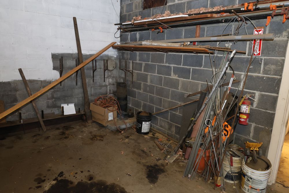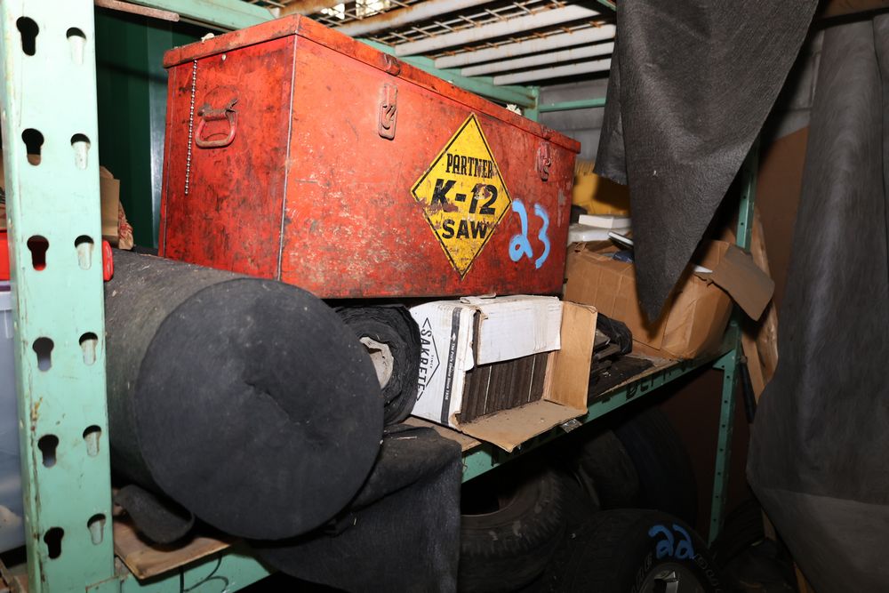 Items include Clark Bobcat Model 825 Hydrostatic Skid Steer Loader, Portable metal-sided office trailer, Conex containers, Micro-Grade Laser System, building materials, tools, tires and more. Items are located in Beacon, NY.
