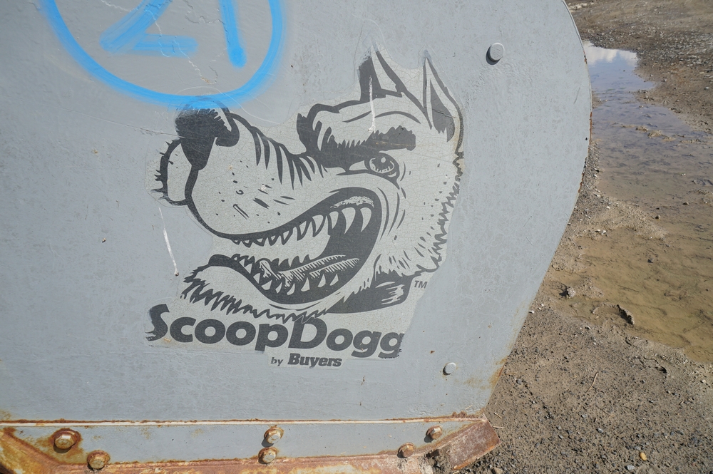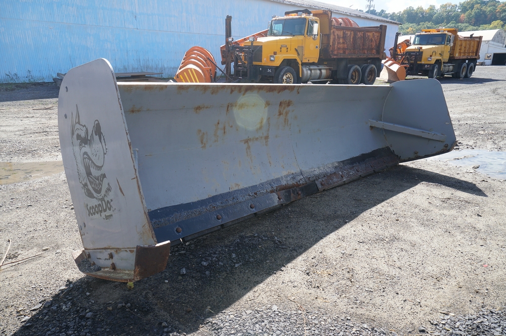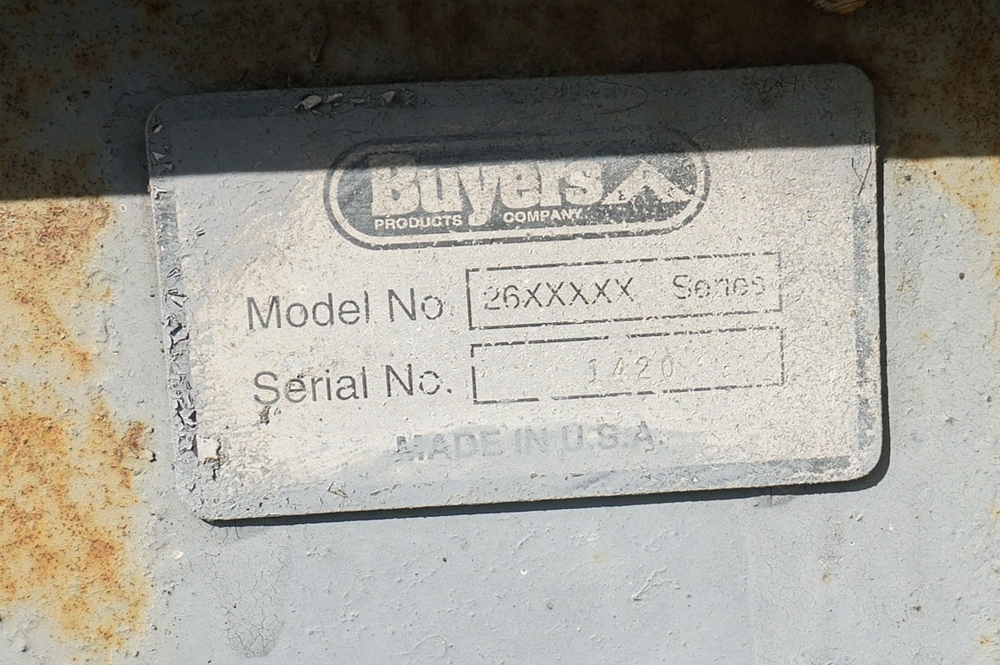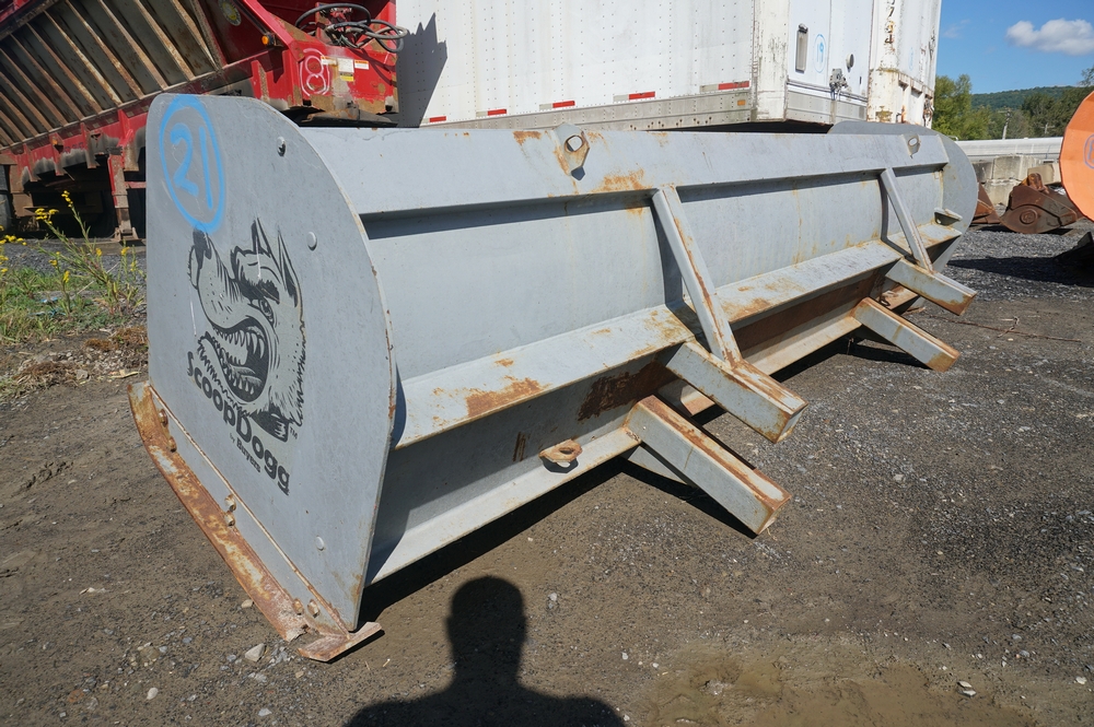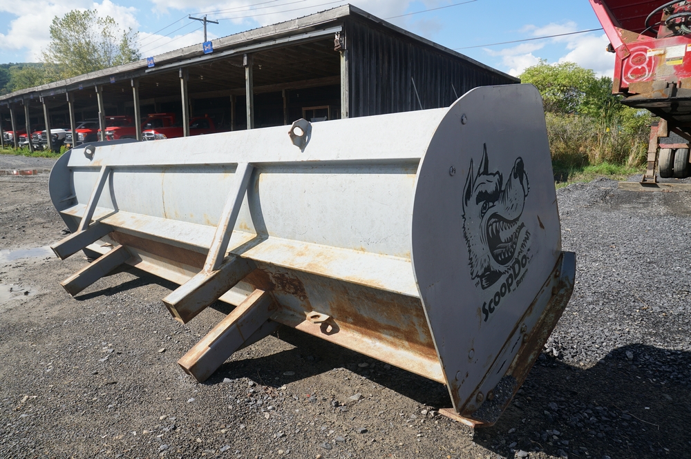 Scoop Dogg 12' Snow Pusher. Bobcat Box Plow. Model:26xxxxx SN; 1420. Seller states: Needs cutting edge. Rust