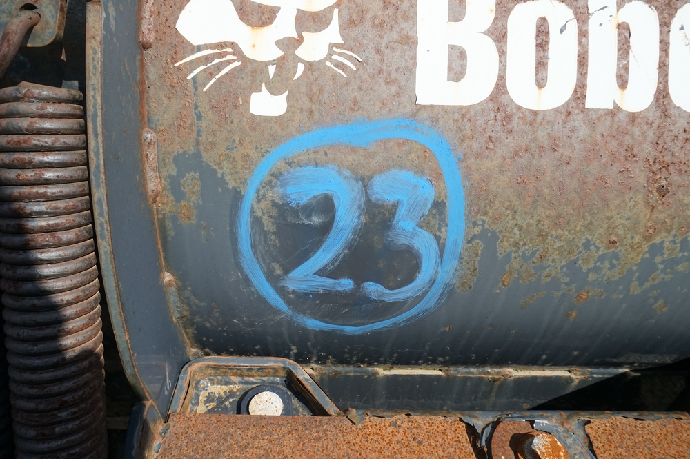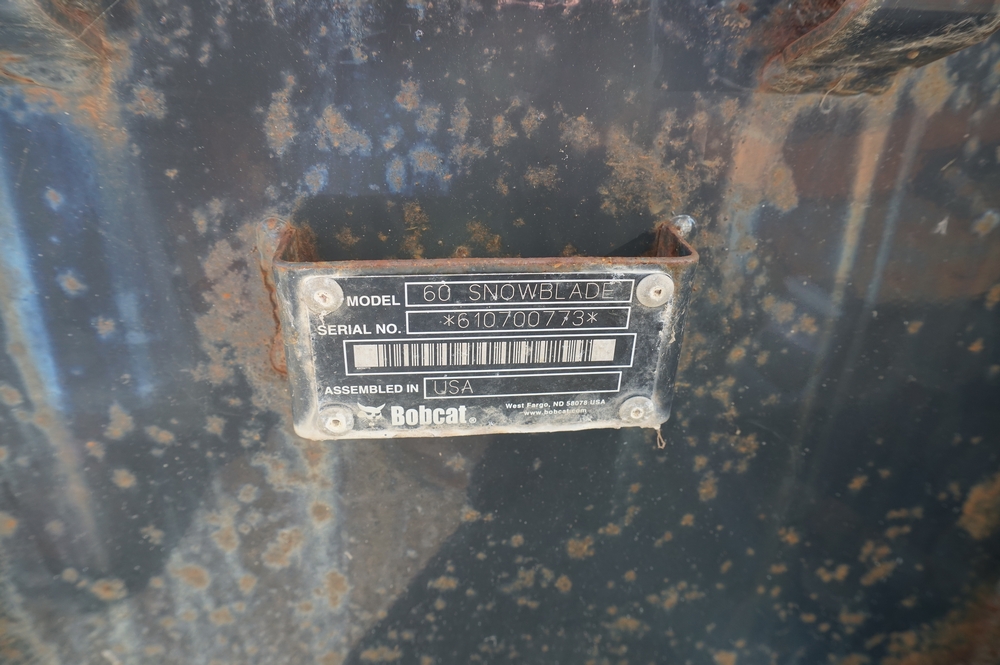 Bobcat 60' Snow Blade. SN; 610700773. Skid Steer Mount. Hydraulic angle control. Rust. Operation Unknown