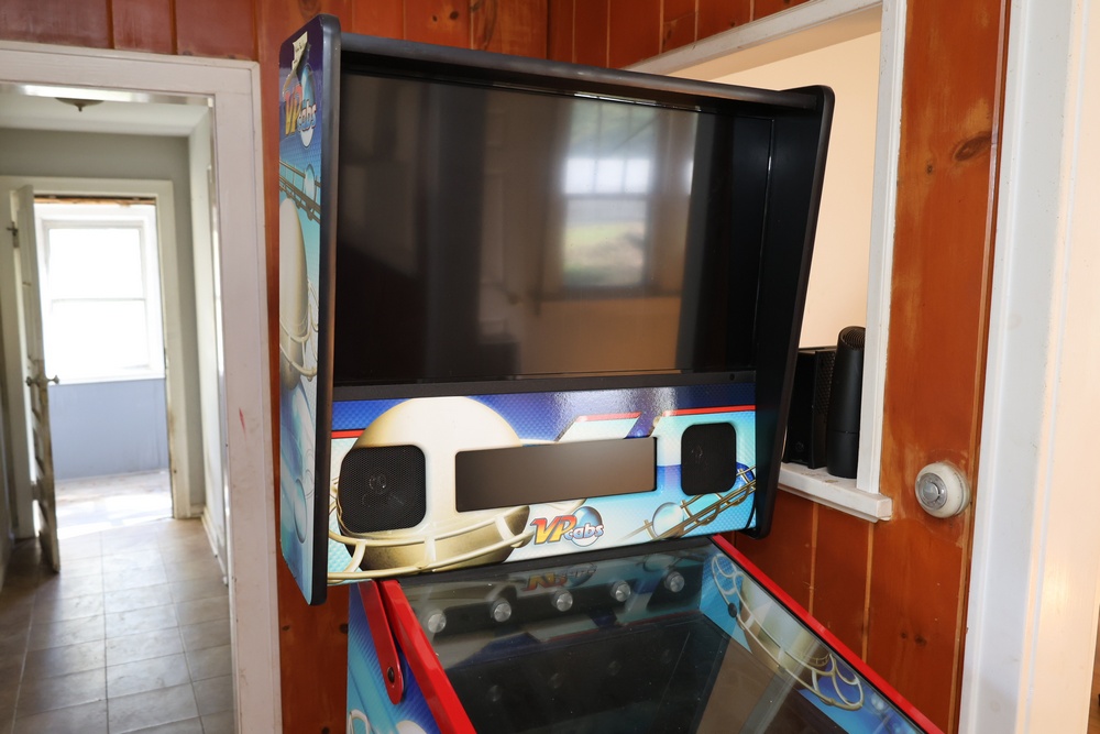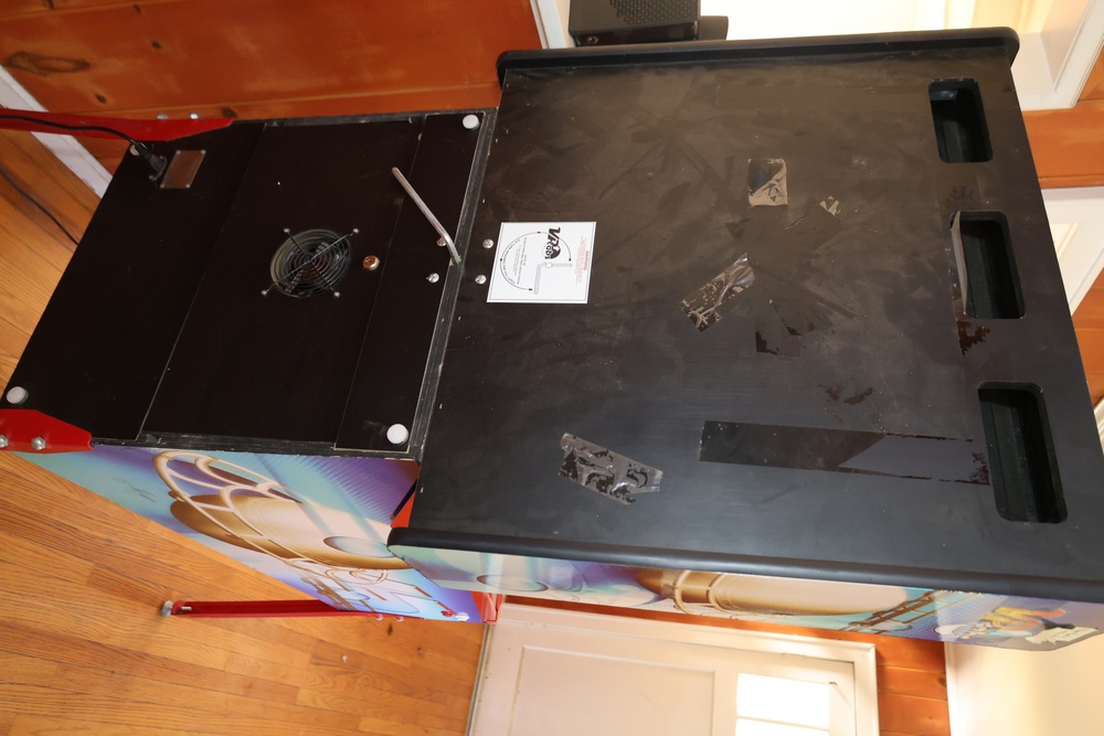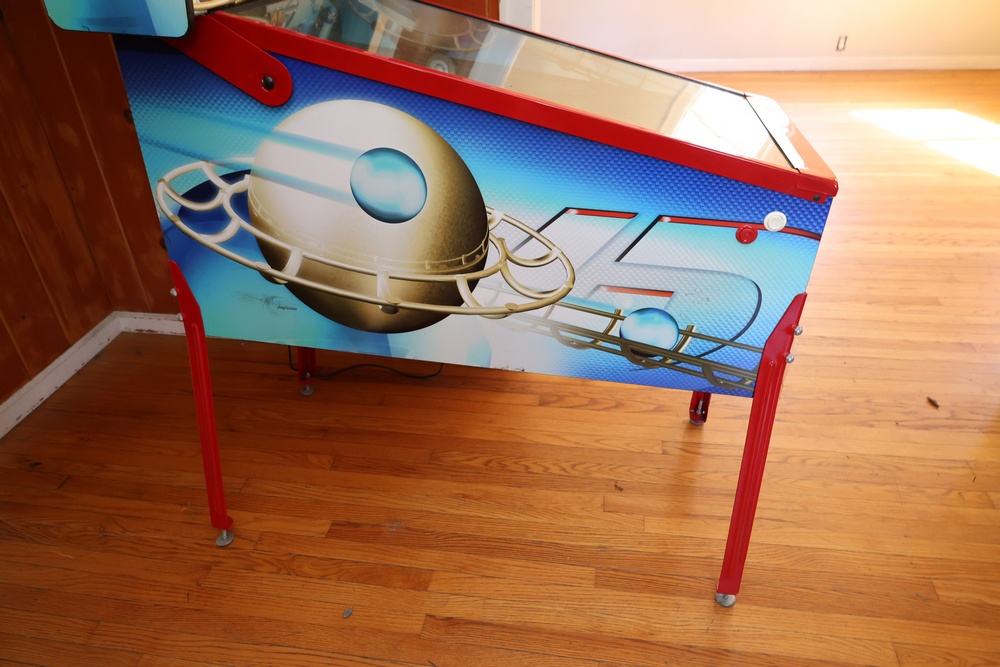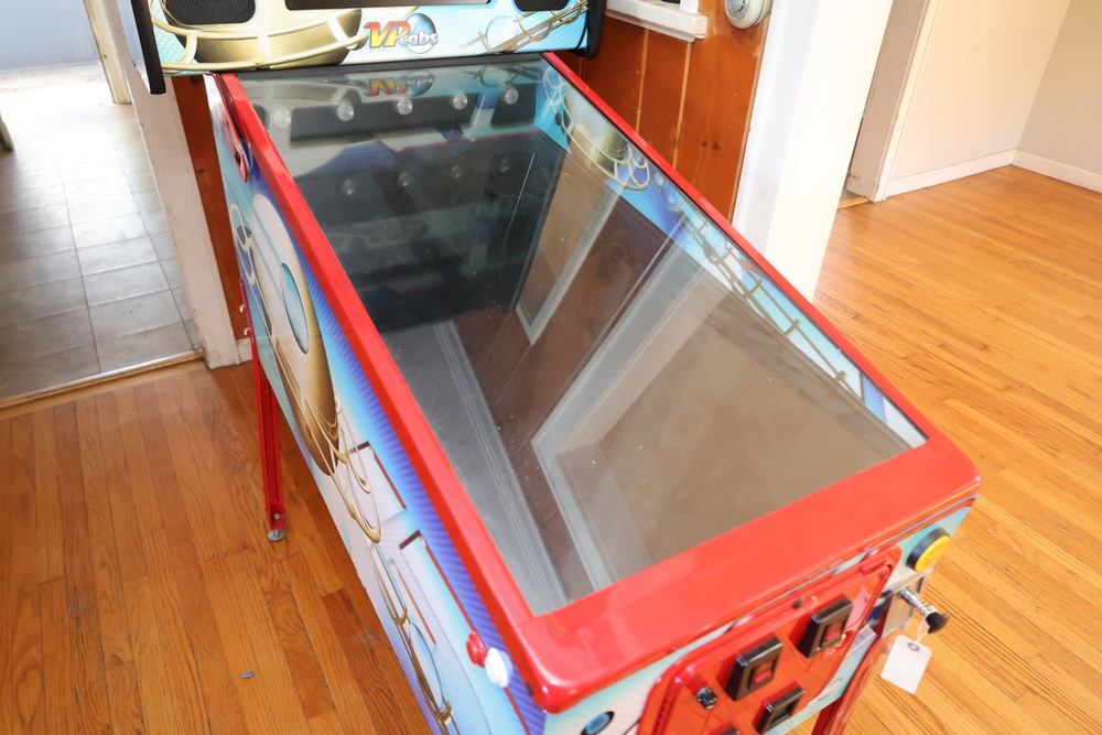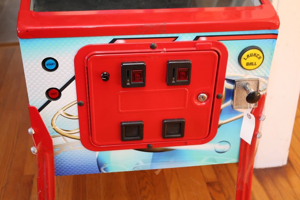 VPcabs digital pinball machine, model LE, serial no. 1162, manufactured in 2015 by VPcabs, Cincinnati, Ohio. The cabinet features custom “JW GFX” artwork, a full digital playfield display, coin door with dual coin slots, and illuminated control buttons including Start, Exit, and Launch Ball. Equipped with the VPcabs Quick Loc head locking system requiring no bolts or glass removal. Unit did not power on when tested and may require repair to operate.