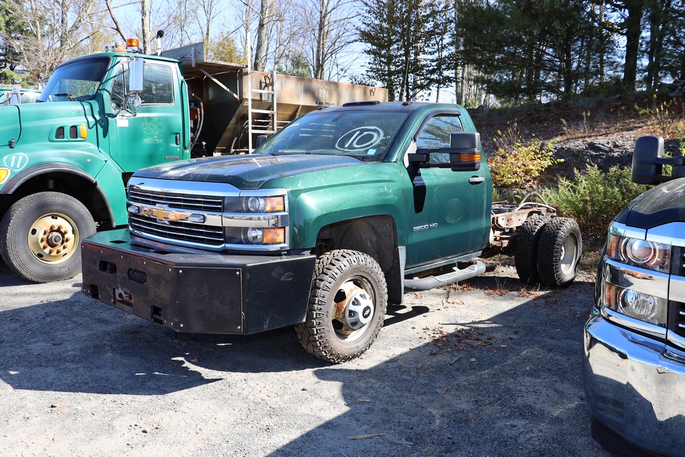 2015 Chevrolet Silverado K3500 Regular Cab and chassis. Engine: 6.0L V8 Gas. Transmission: 6 speed Automatic, 4WD With duel rear wheels. 46,394 Miles. Tires LT235/80R17. Truck is in good shape. Starts and drives. VIN: 1GB3KYCGXFZ547154. Asset Tag 41276