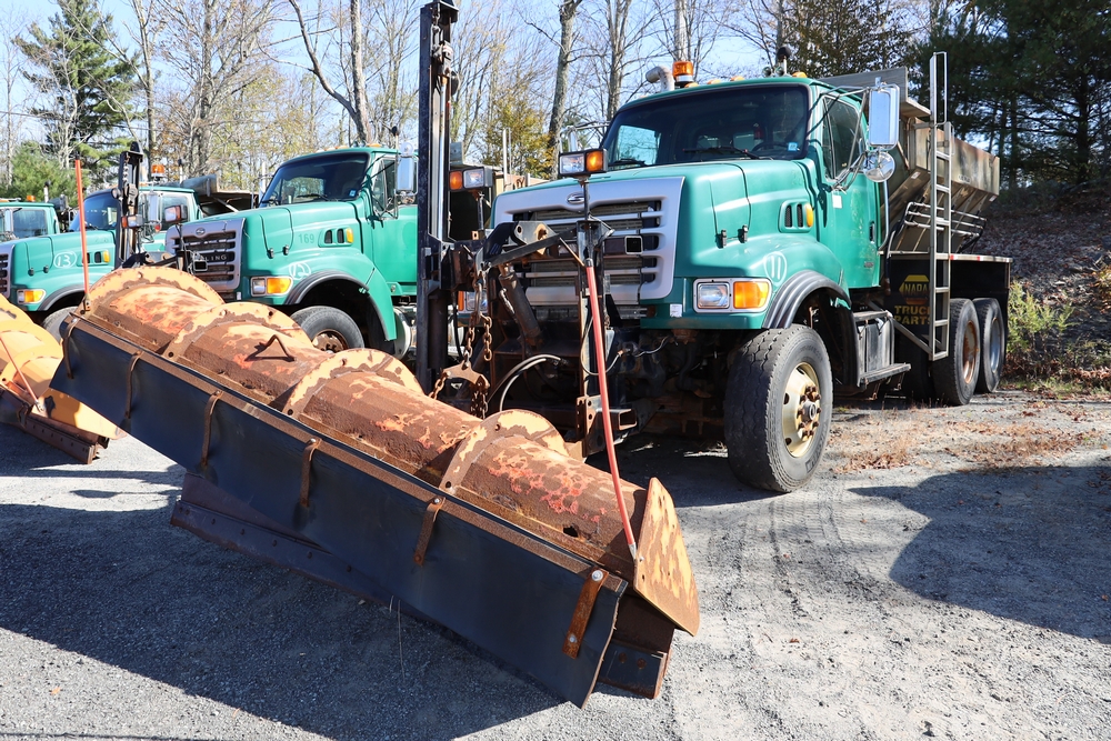 2005 Sterling Model LT9511 Engine: Mercedes-Benz MBE 4000 6 Cyl 12.8L Diesel. Transmission: Eaton Fuller Model RT016908LL, Body has sander installed with Plow and Wing. Comes with 13’ Steel Dump Body. 64,000lbs. Front tires 315/80R22.5, Rear tires 11R24.5 127,506 Miles. Starts, has rust issues. VIN: 2FZHAZCV35AN73484, Asset Tag 18504