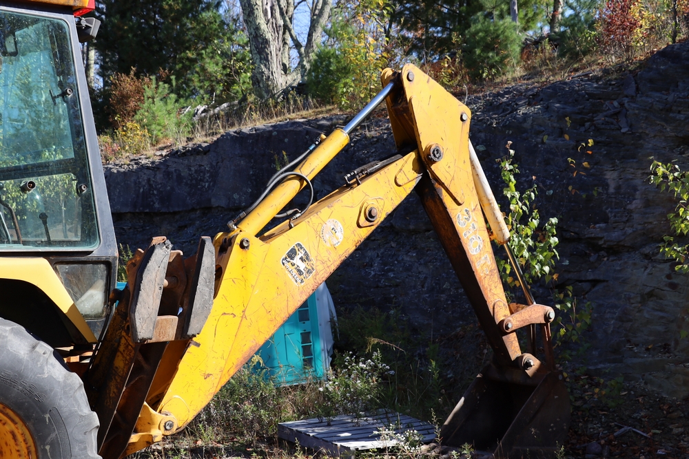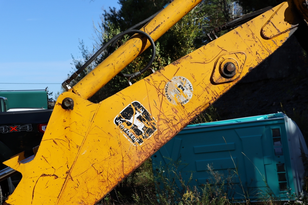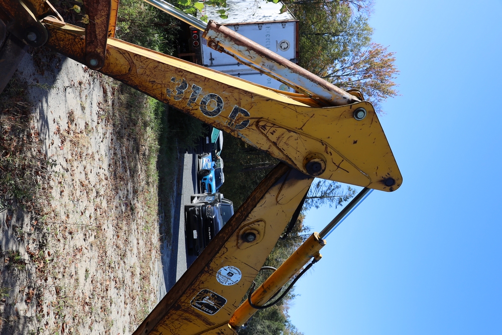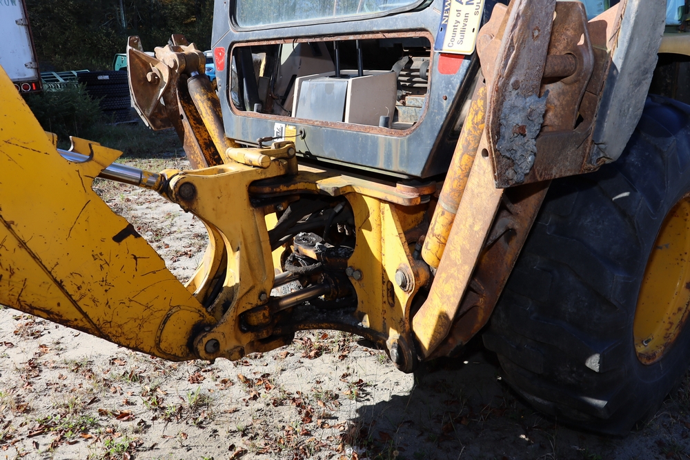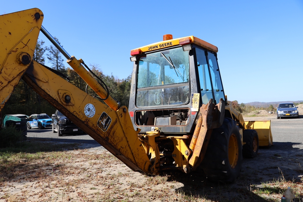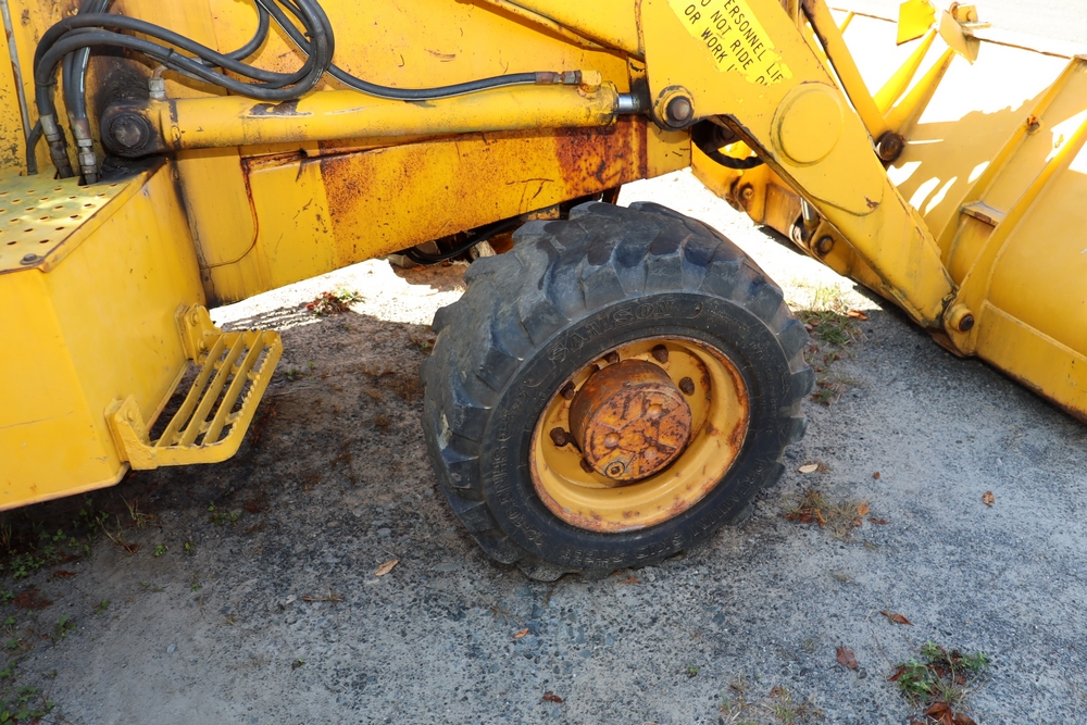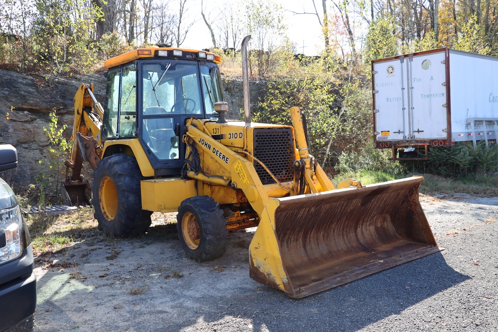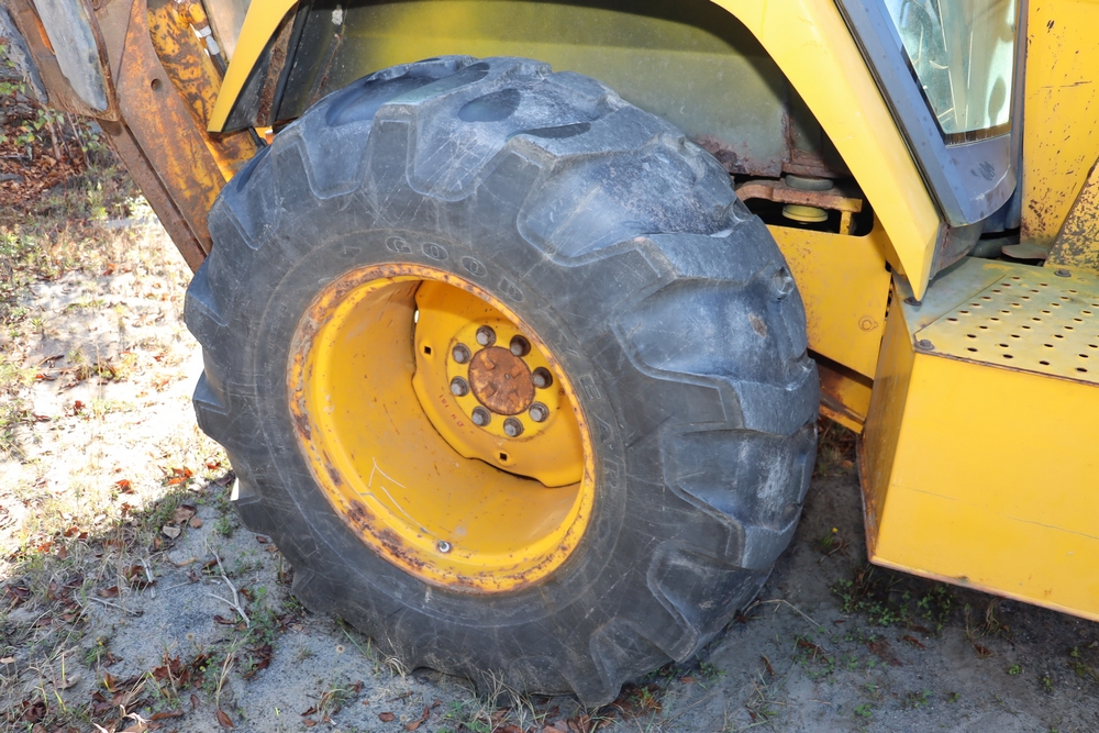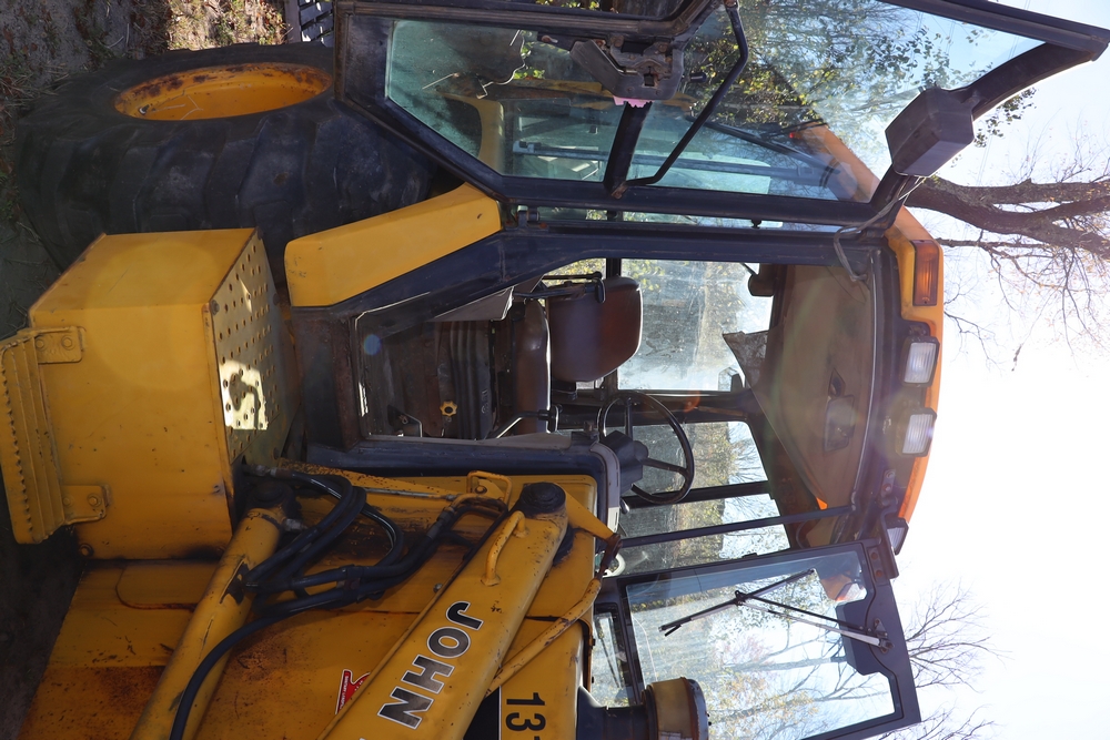 1992 John Deere 310D 4WD Backhoe. Weight 14,900 lbs, Motor: 403 9D 4Cyl diesel 70HP Front tire 12-26.5 Rear tire 19.5L-24, 2 Stick Backhoe. The Hydraulic cooler was bypassed with a hose due to a leak. Machine is older but operates as it should. Hours 9,961. VIN: T0310DF85171 No Asset Tag