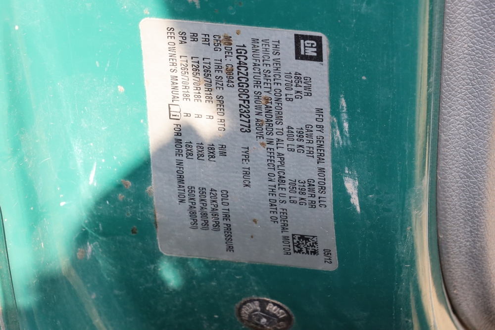 2012 Chevrolet Silverado Crew Cab 8’ bed 2WD. Engine: 6.0L V8. Transmission: 6 Speed Automatic. Starts and Drives, has rust issues. 132,612 Miles, VIN: 1GC4CZCG8CF232773. Asset Tag 41152