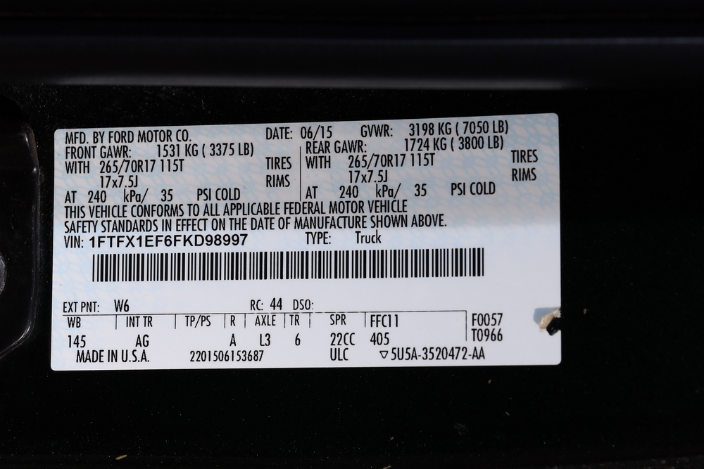 2015 Ford F-150 Ext Cab 4X4 6 ½ Bed, 5.0L V8 Gas Engine., Transmission Select Shift Automatic, Tires LT265/70R17. 90,138 Miles, Starts and Moves, Some rust. VIN: 1FTFX1EF6FKD98997 Asset Tag 41265