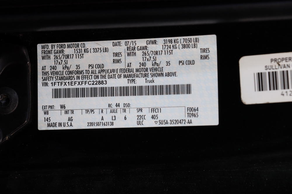 2015 Ford F-150 Ext Cab 4X4 6 ½ Bed, 5.0L V8 Gas Engine. Transmission Select Shift Automatic, Tires LT265/70R17. 75,642 Miles, Some Rust, Starts and Moves. VIN: 1FTFX1EFXFFC22883 Asset Tag 41285,