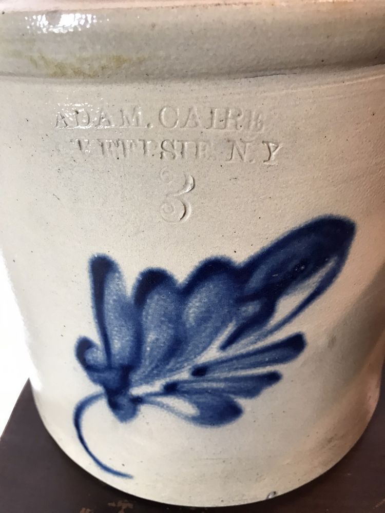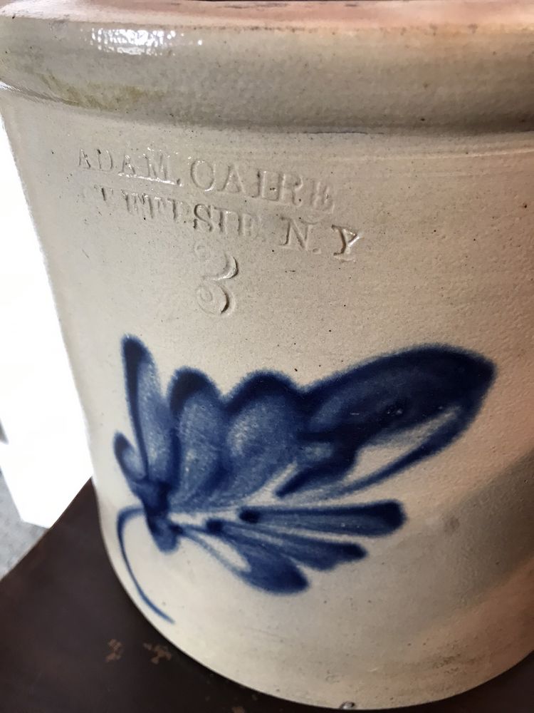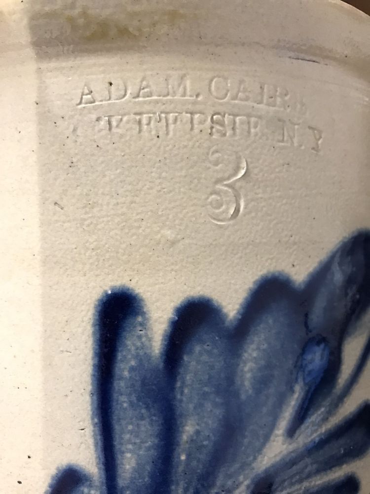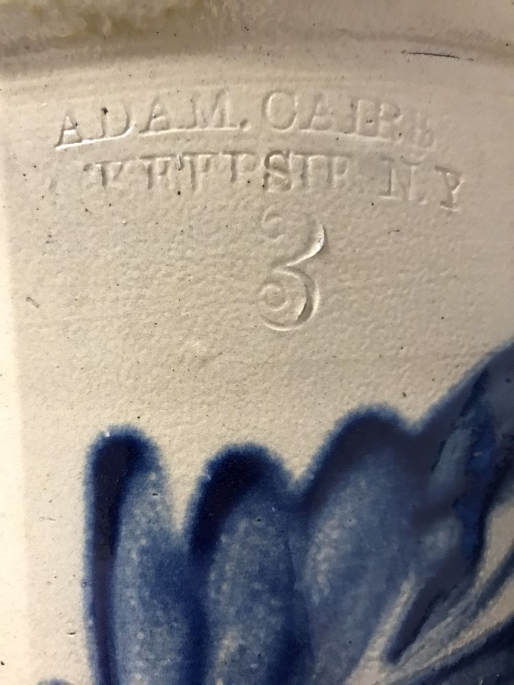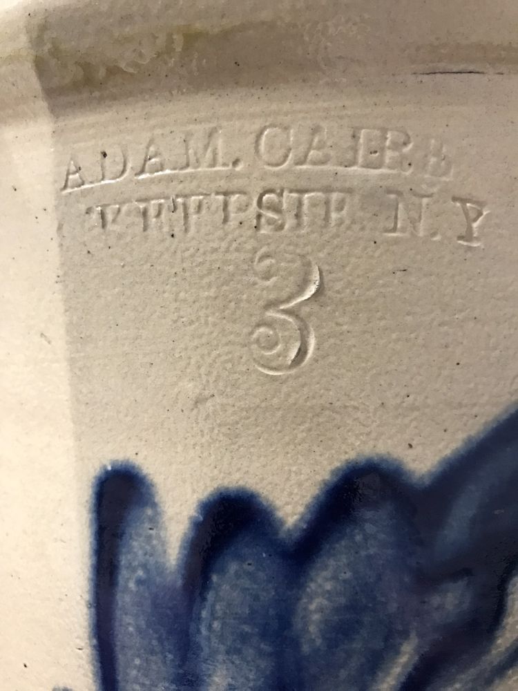 C-1850 Adam Caire Poughkeepsie, NY #3 Blue Decorated Crock, Double-Handled, From the Private Collection of Judge James Brands. Pickup Only, Rhinebeck, NY