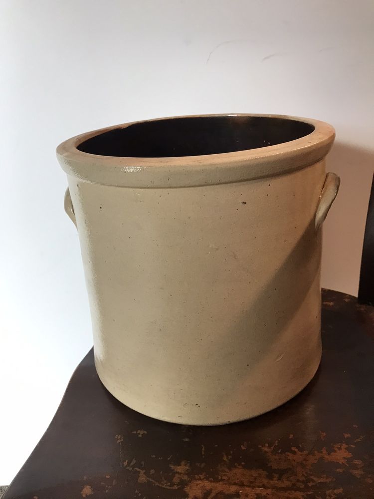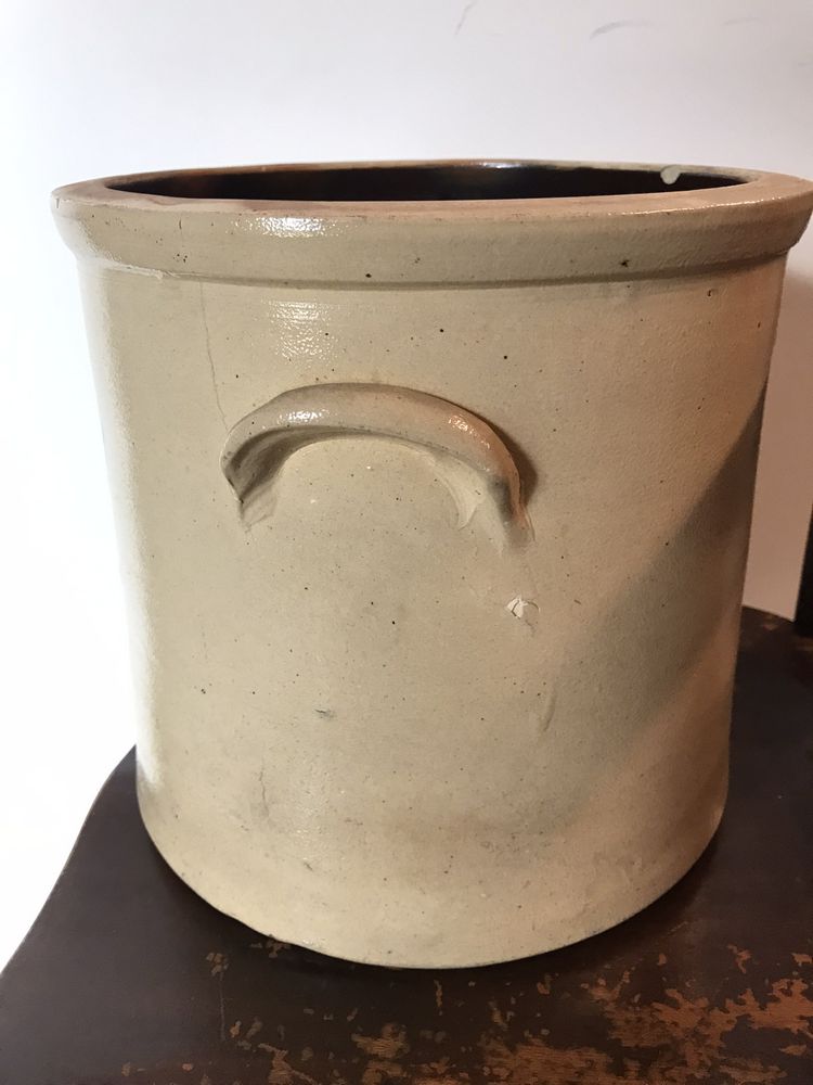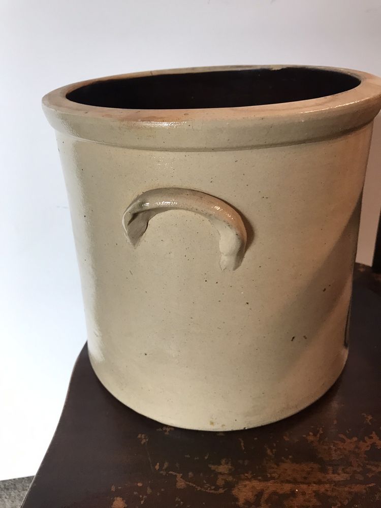 Judge Brands hand-picked this 19th century beauty from his chambers in the Supreme Court building in Poughkeepsie, NY. Circa 1850s, this double handled crock measures 10.25" high x 11.5" diameter and is salt-glazed stoneware decorated in cobalt blue having a beautiful motif. (Judge Brands donated crocks to the DCHS In 2021, 2022, 2023 & 2024 they all sold to benefit the DCHS!)