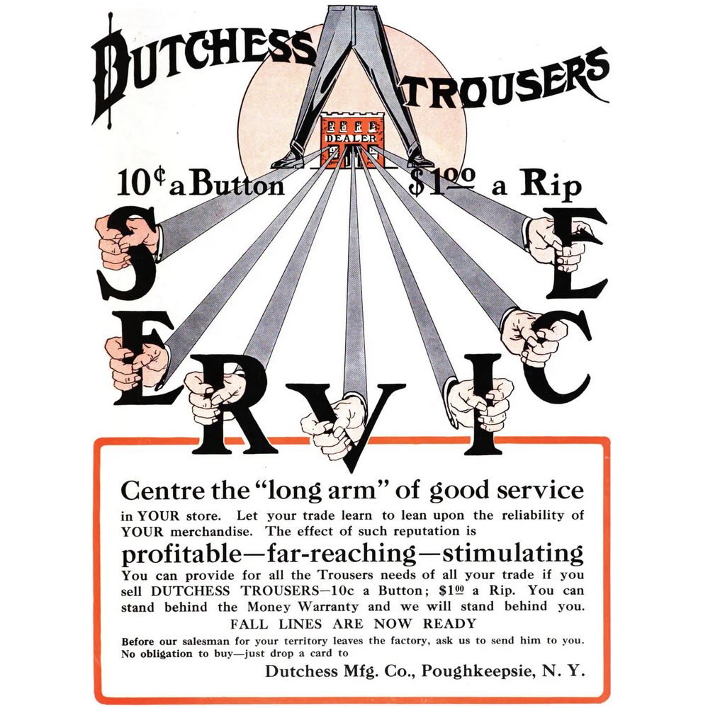 Rare Tin Advertising Sign for Dutchess Trousers, Pickup Only, Rhinebeck, NY
