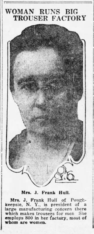 This 19thC local manufacturing company with 800 employees was run by a woman - Mrs. Frank Hull of Poughkeepsie. History of the Company with photos: https://poklib.org/indestructible-trousers/