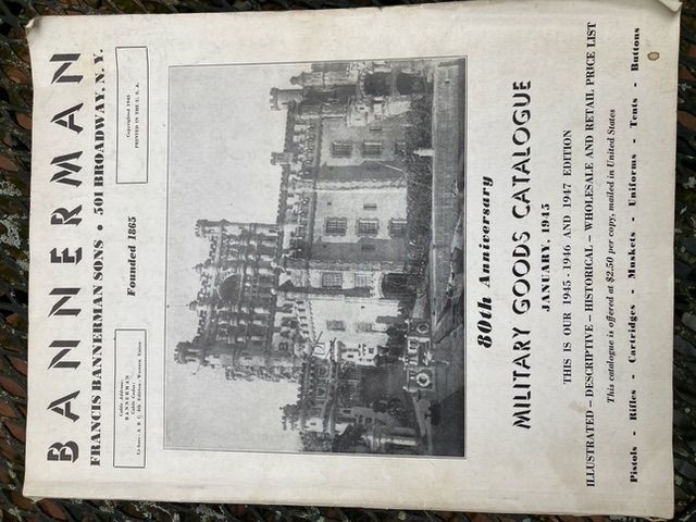 PLUS Bannerman 80th Anniversary Military Goods Catalog dated January 1945, No. 26. Contains 286 pages, Appendix to the 1940 75th Anniversary Catalog, and Catalog Index. Also includes pictures of Polopel Island, with caption "On account of the explosives stored here, no landing is permitted, Armed guards are on duty at all times." https://bannermancastle.org