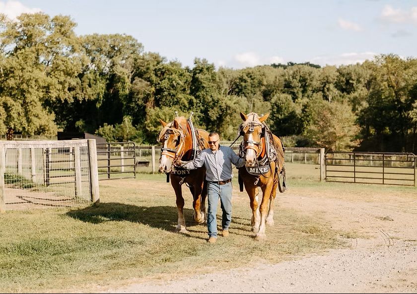 Come join John and Danny Blumberg for an amazing half day of family fun learning to groom, harness and drive a 5000 lb team of draft horses. We will customize your visit based on your interest, and we can teach you everything you ever wanted to know about harnessing and driving these "gentle giants." Or, if you prefer, just grab a hot cocoa, relax, and enjoy a peaceful ride on one of our wagons or sleighs. 10 adults maximum.