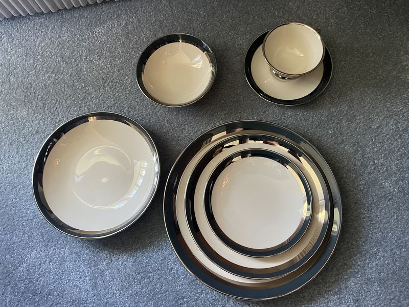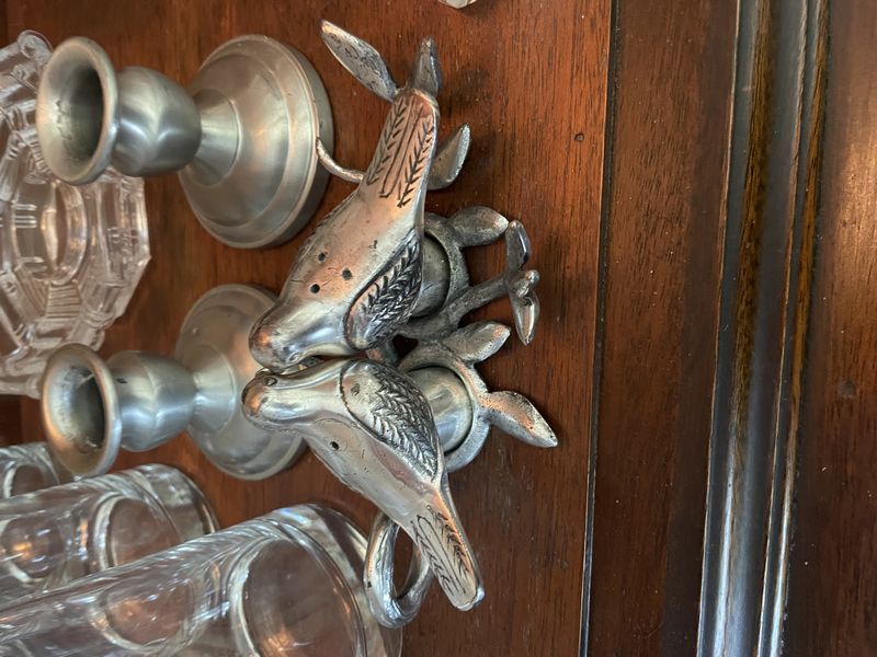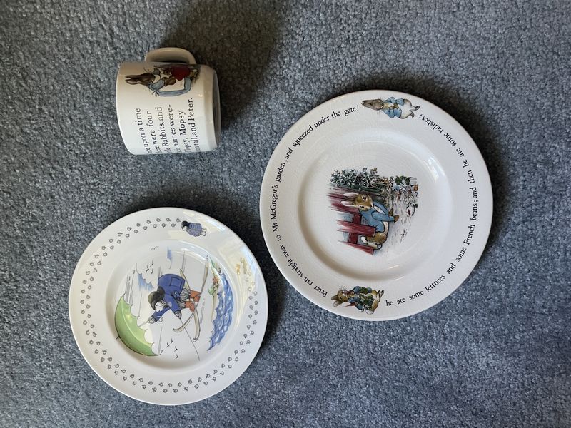 Formal Entertaining and Quality Decor. Gorham 7-pc place setting with additional pcs; stemware; glassware; Belleek creamer & sugar; Royal Worcester covered dish; pewter candlesticks; Lenox bowl; Wedgwood Peter Rabbit set; other related items as seen in photos. Cab incl in lot #4. See photos for maker's marks, quantities, and other details. Loc up one flight in raised ranch.