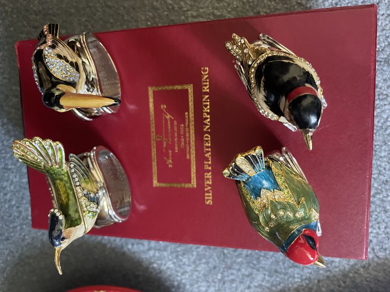 Items include formal dining set/china cabinet; Gorham seven piece place settings; Belgium blue 1' dia. cast iron pot; T-Fal pan; Nancy Calhoun dish ware; Queen Ann wood chest; Jessica Charles uphol. vintage swivel barrel chair; sectional sofa; lamps; Queen Asian-style bed; White Home Furniture hardwood chest; outdoor five-piece dinette set; Drexel Heritage two-drawer light maple console & more. Items are located in Meriden, CT.