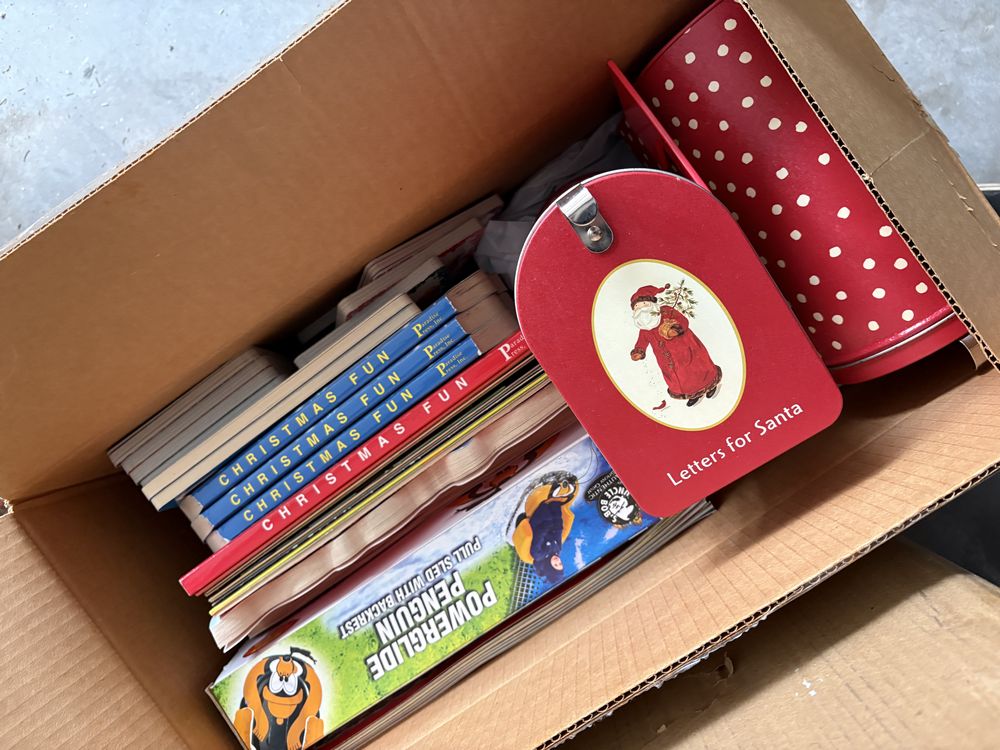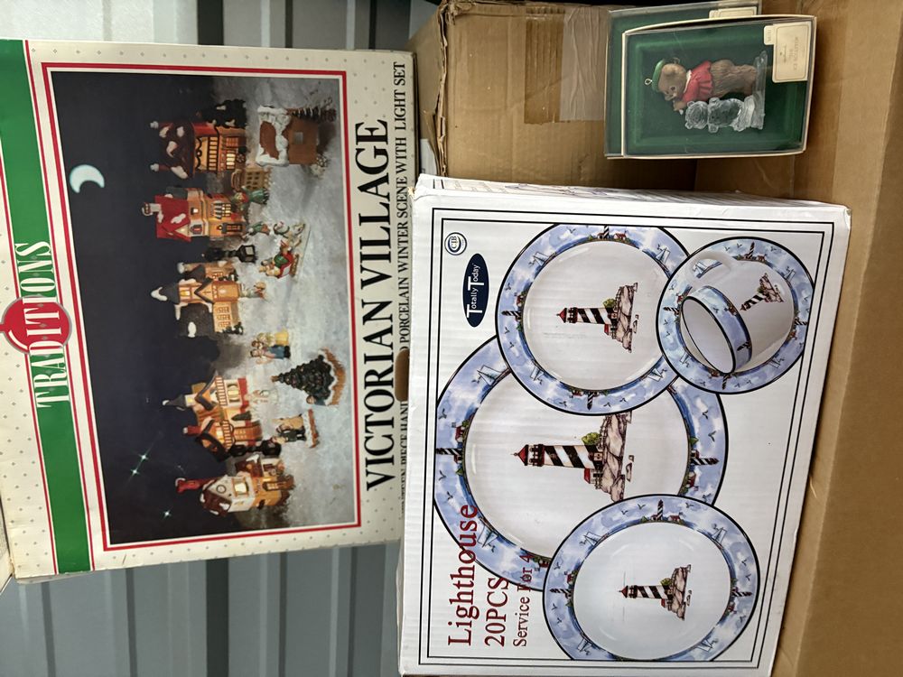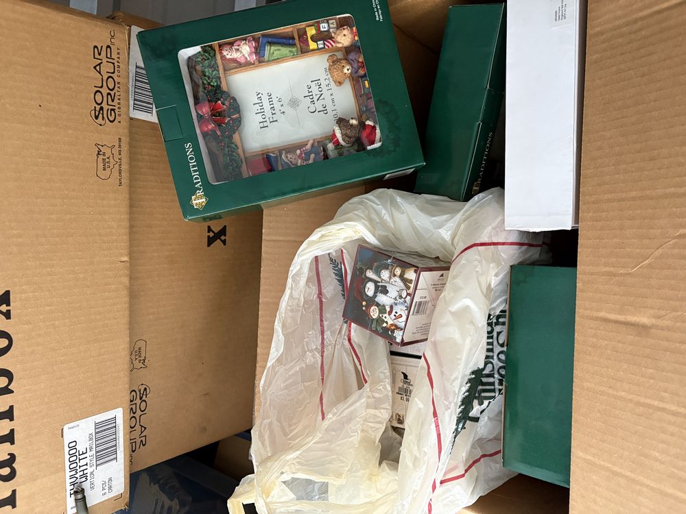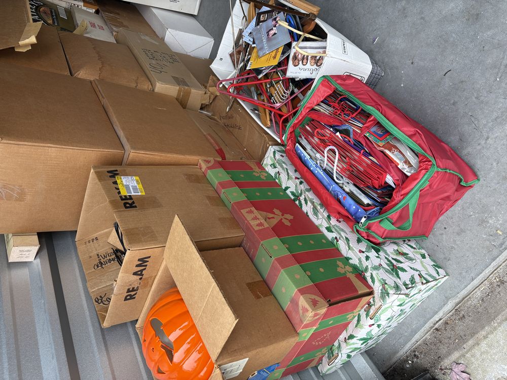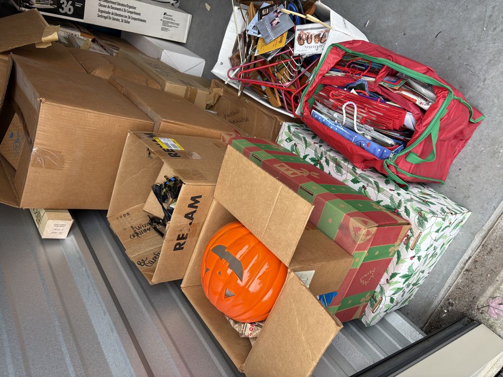 Contents of a 10' x 30' double door storage unit being sold by the storage unit owner. Contents include many boxes of brand new & used Christmas merchandise from Hallmark, Christmas Tree shop, etc., household items, records, tapes, vintage toy tanks/ figures, Halloween decor & lots more. Items are located in Somers, CT.