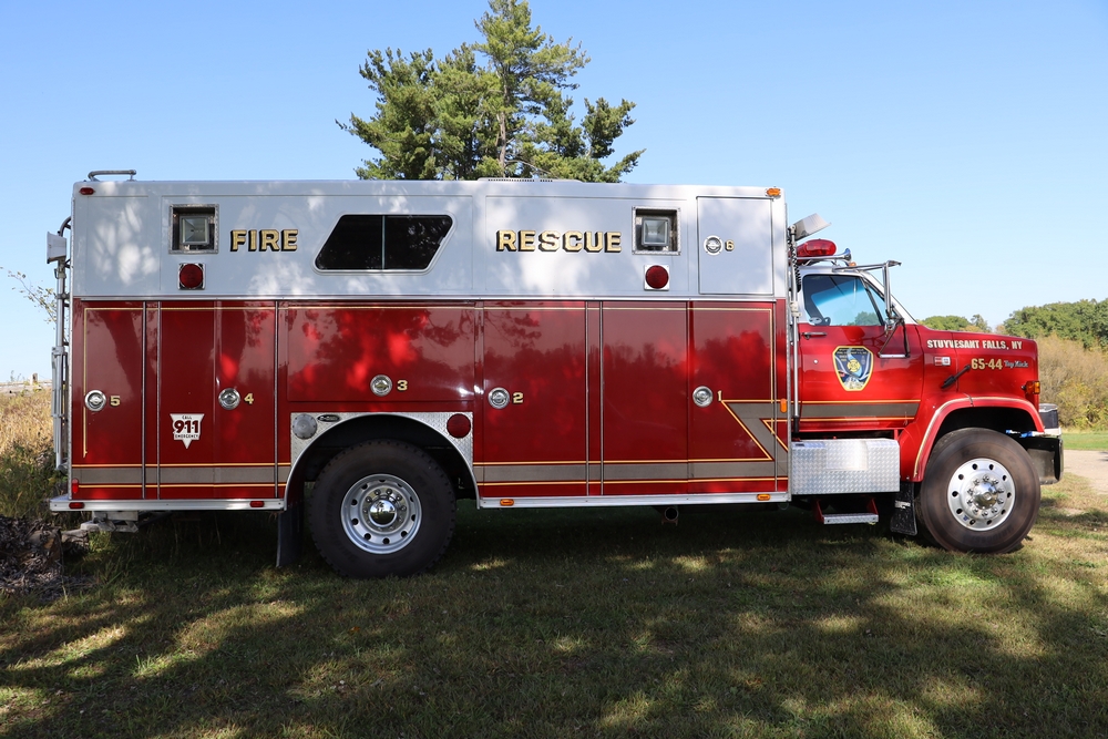 Items include 1990 GMC TopKick C7500 E-One Rescue Truck and Hurst rescue tools. Items are located in Stuyvesant Falls, NY.