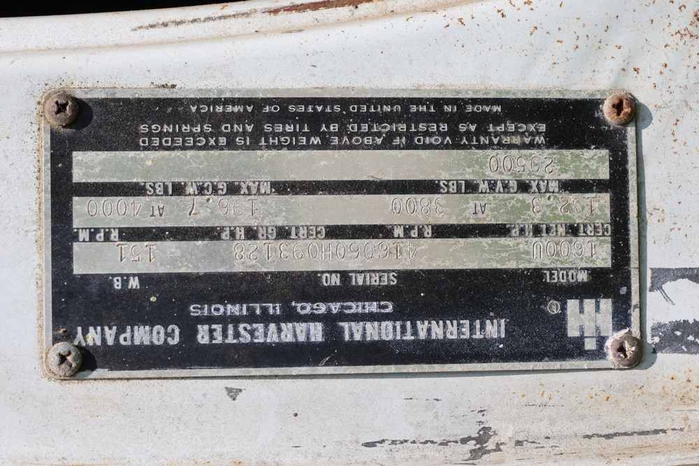 1952 International model L-112 pickup truck with 5400 GVWR, chassis serial number 64050, engine model SD-220 serial number 144101, odometer reading 39510. Does not run or drive. Transferable registration available. Bill of sale only.