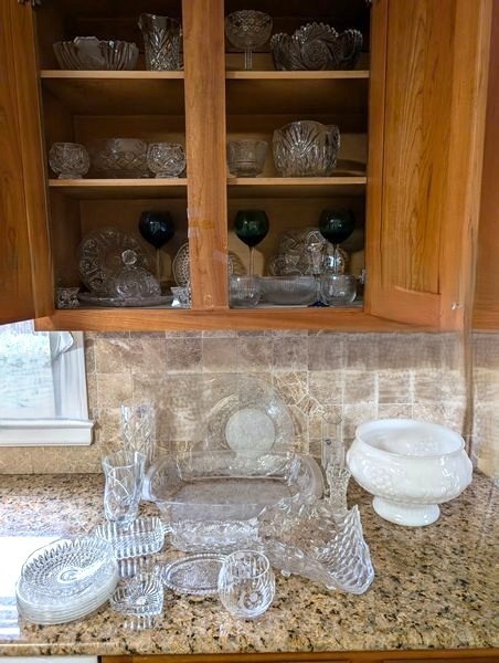 Crystal and Glass Entertaining, featuring Italy, Germany, Poland, Romania and Great Britain. Large Princess House rectangle baker, 17"Lx1'W; assorted bowls; handled pitcher; colored stemware; vases; Princess Diana commemorative crystal glass by Stuart of Gr Britain; milk glass pedestal punch bowl; glass dishes; more! See photos and maker's marks.