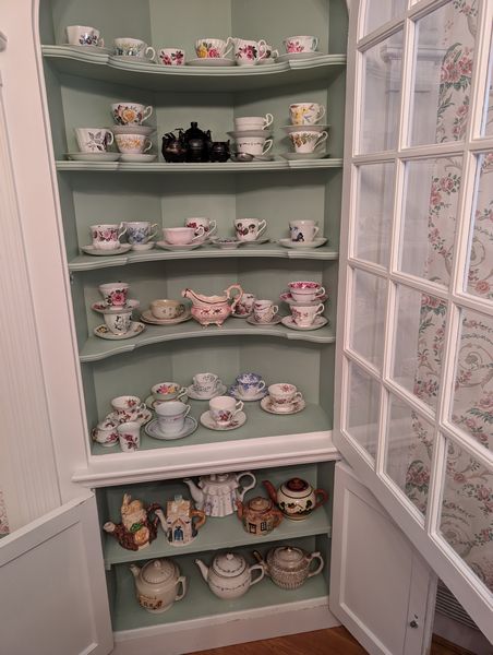 Vintage Tea Cup & Saucer Sets, Tea Pots. 33 tea cup & saucer sets by Royal Albert, Crownford, Royal Grafton, Royal Worcester and others; several creamer & sugar sets; eight covered tea pots (whimsical & traditional). One tea pot has chipped lid-see photo. See photos for more details and maker's marks.