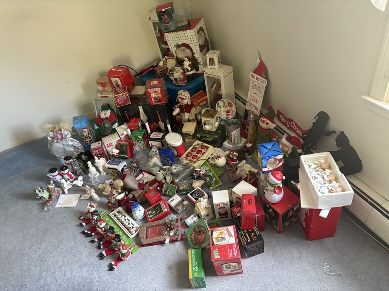 Items include Temple Stuart colonial maple hutch; Swift hand blender; jewelry; Lenox Christmas decor; Polish pottery; bar cabinet; Raleigh Bike; Toro lawnmower; vintage Old World Santa Collection; Japanese serving tray; liquor decanters; JFK banjo chair; vintage Qubic 3D tic-tac-toe; child's wood roll top desk; Star Wars toys; The New Haven Clock Co. mantle clock; ladders; modern sleigh bed; vintage cameras & typewriter; vintage bed frame; power shovel; generator & more. **NOTE: Some lots are missing photos. They will be added soon. Items are located in Wethersfield, CT.
