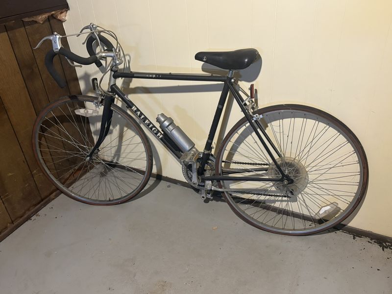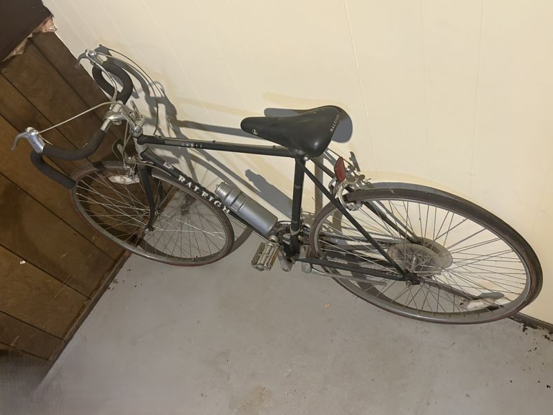 Sporting with Raleigh Bike. Featuring: 60" bow; Spaulding Fast Flight gold clubs; Raleigh bike (loc in basement); other related items; opt shelving unit.
