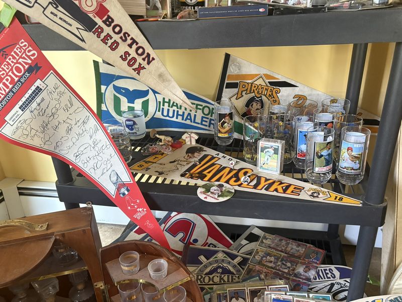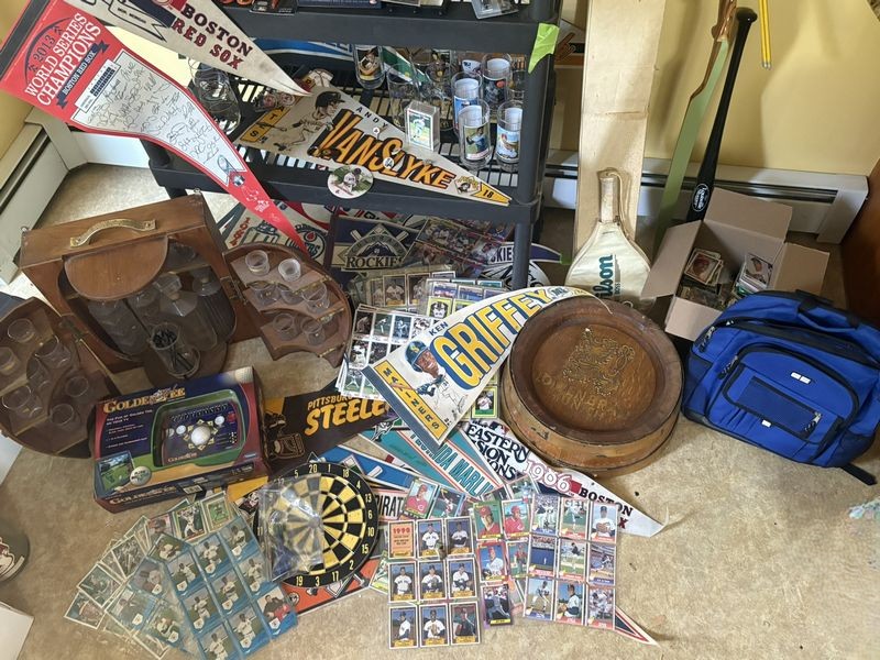 Items include Temple Stuart colonial maple hutch; Swift hand blender; jewelry; Lenox Christmas decor; Polish pottery; bar cabinet; Raleigh Bike; Toro lawnmower; vintage Old World Santa Collection; Japanese serving tray; liquor decanters; JFK banjo chair; vintage Qubic 3D tic-tac-toe; child's wood roll top desk; Star Wars toys; The New Haven Clock Co. mantle clock; ladders; modern sleigh bed; vintage cameras & typewriter; vintage bed frame; power shovel; generator & more. **NOTE: Some lots are missing photos. They will be added soon. Items are located in Wethersfield, CT.