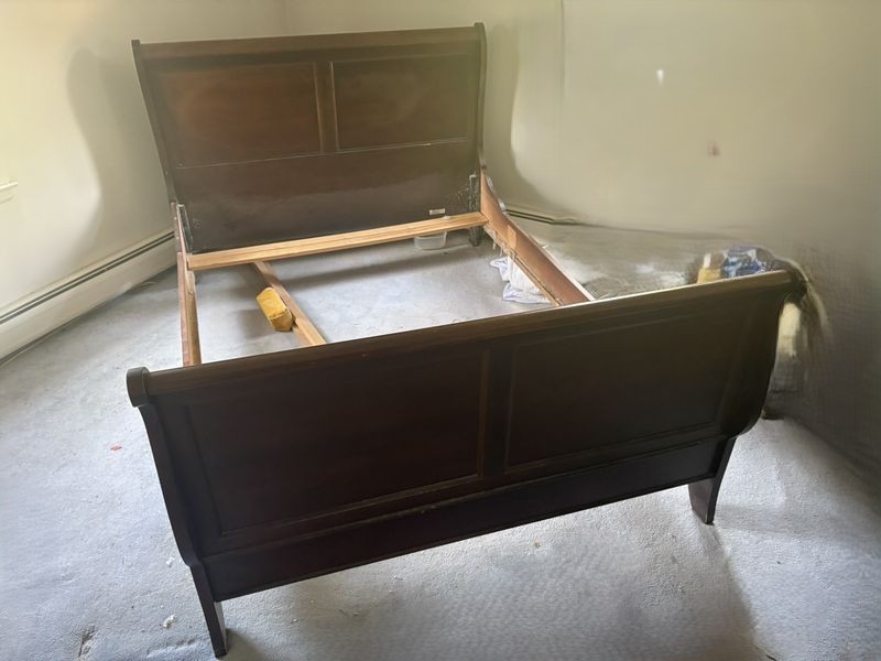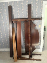 Vintage Bed Frame, Other Items. Queen-sized bed frame, including headboard, 63"Wx47"H & footboard, 13"H (shows age-related wear & one post is cracked). Photos to come! Loc on 2nd fl.