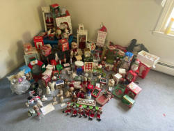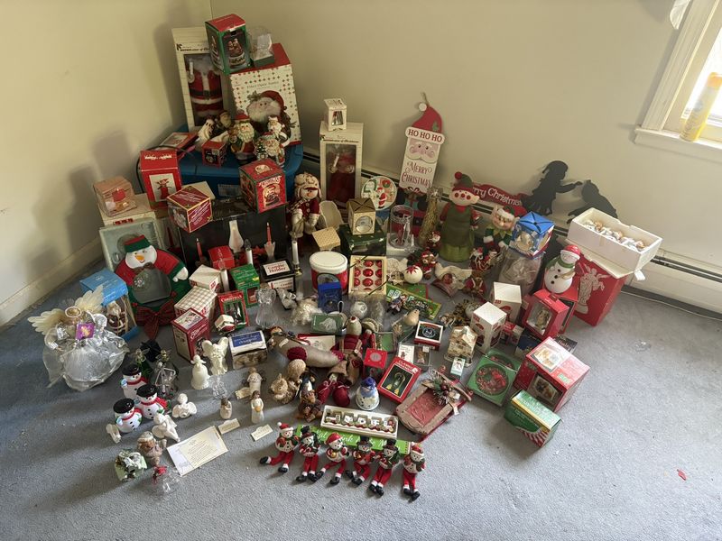 Items include Temple Stuart colonial maple hutch; Swift hand blender; jewelry; Lenox Christmas decor; Polish pottery; bar cabinet; Raleigh Bike; Toro lawnmower; vintage Old World Santa Collection; Japanese serving tray; liquor decanters; JFK banjo chair; vintage Qubic 3D tic-tac-toe; child's wood roll top desk; Star Wars toys; The New Haven Clock Co. mantle clock; ladders; modern sleigh bed; vintage cameras & typewriter; vintage bed frame; power shovel; generator & more. **NOTE: Some lots are missing photos. They will be added soon. Items are located in Wethersfield, CT.