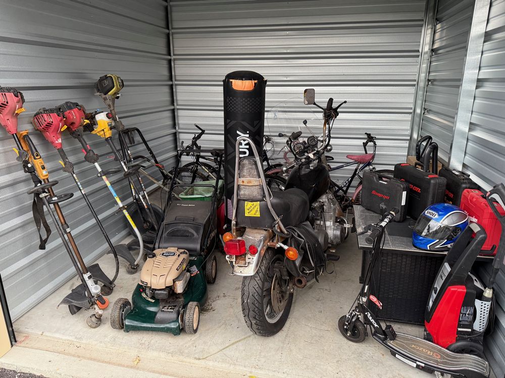 Contents of a 10' x 10’ storage unit being sold by the storage unit owner. Contents include: Yamaha motorcycle, motorcycle helmet, Craftsman 21" front drive push lawn movers, outdoor/landscape equipment, power washer, outdoor fire pit, Century kick boxing training bag, tools, cases, bicycles plus much more. The motorcycle is being sold parts only. The seller nor the Absolute Auction Center nor the storage facility will not help in obtaining vehicle paperwork. The seller nor the Absolute Auction Center nor the storage facility will not help in obtaining vehicle paperwork. The functionality of electric/electronic items are unknown. The authenticity of items are unknown/have not been checked. The unit is located in Poughkeepsie, NY.