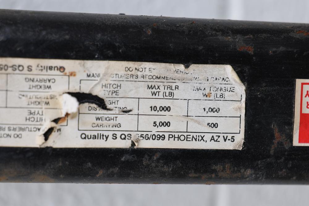 Trailer Hitch with 2 Inch Square Receiver Opening and Measures 31.75 Inches in Length. Maximum trailer weight is 10,000 lbs, tongue weight capacity is 1,000 lbs, and weight carrying capacity is 5,000 lbs. Item exhibits signs of wear consistent with prior use. Pickup only.